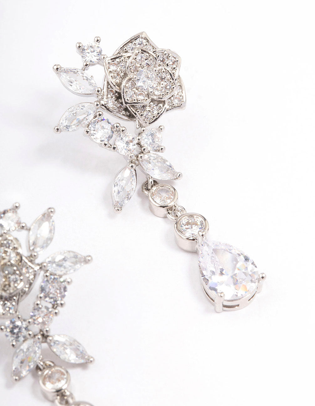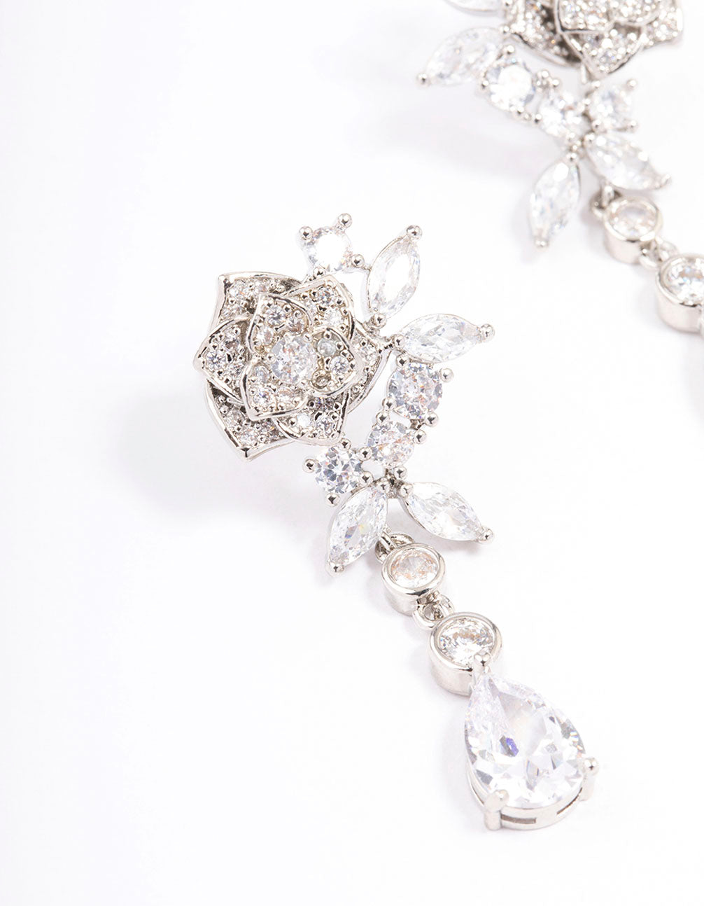 Silver Cubic Zirconia Flower Diamante Drop Earrings