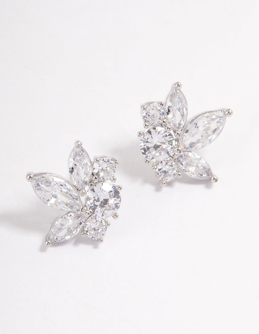 - Style these silver-toned, lotus stud earrings with a set of simple huggie earrings for a curated look.