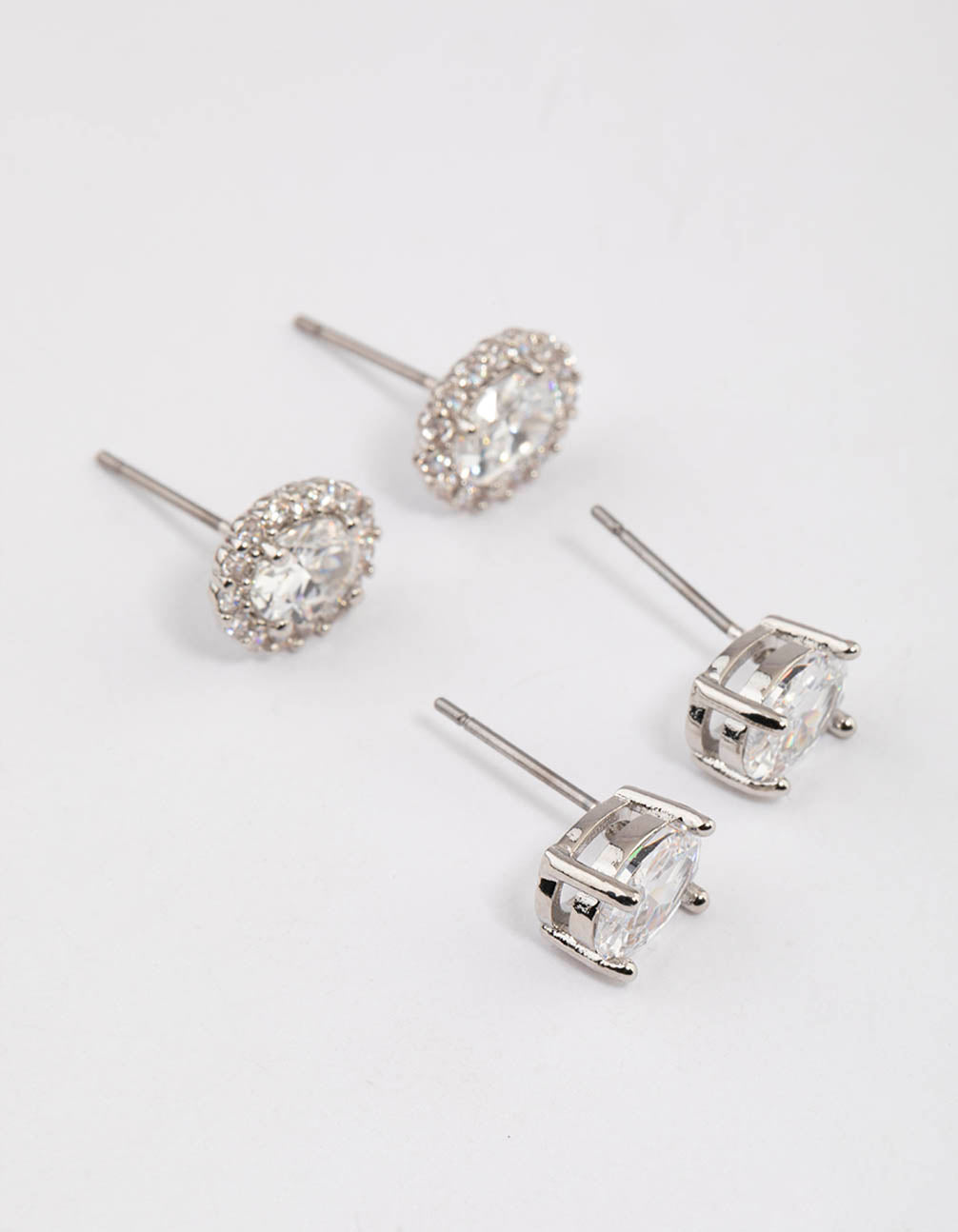 - This Silver Oval Cubic Zirconia Stud Earring Pack contains two sets of studs that can be layered together, or styled solo for a minimalist effect.