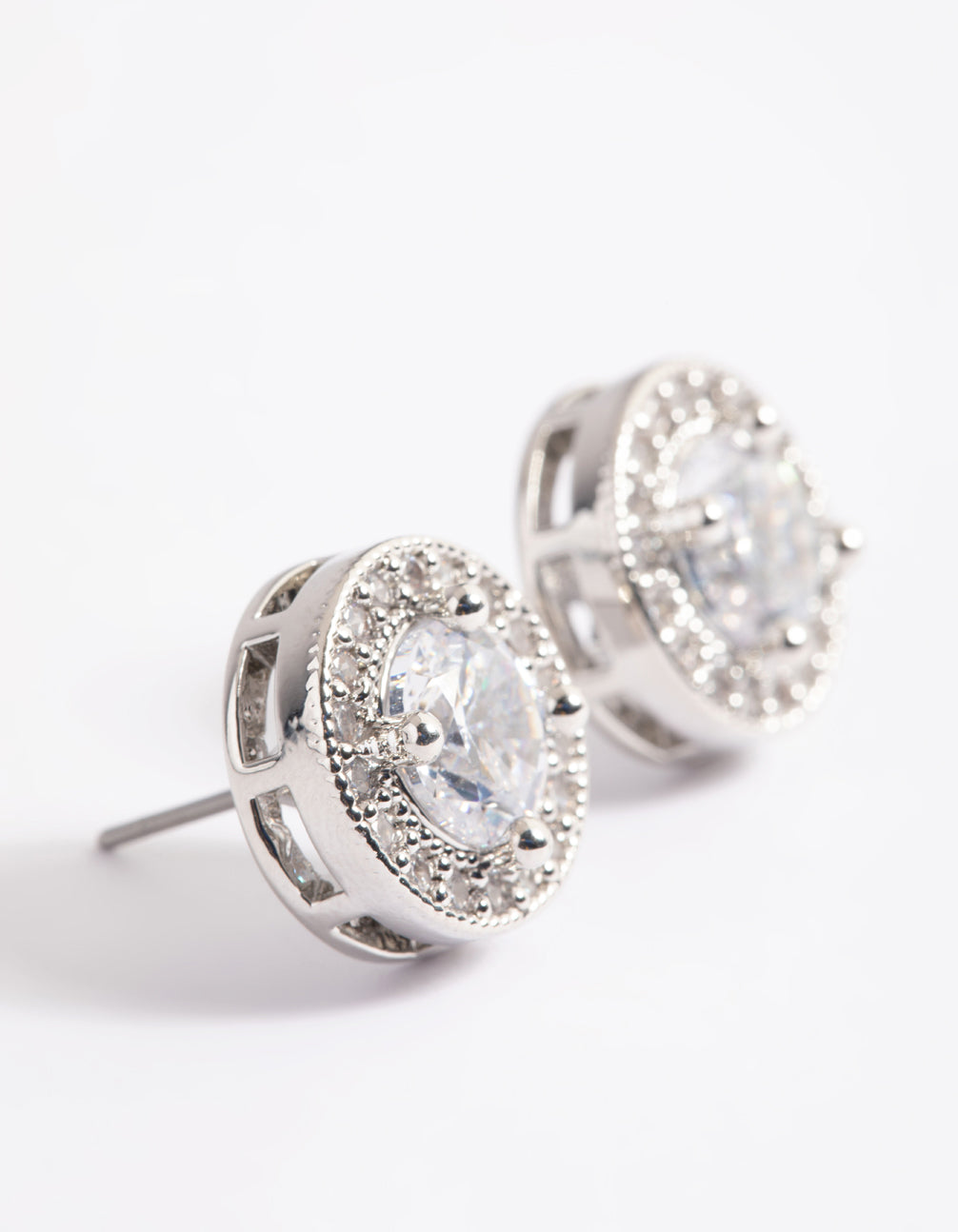 Silver Pave Circle Stud Earrings