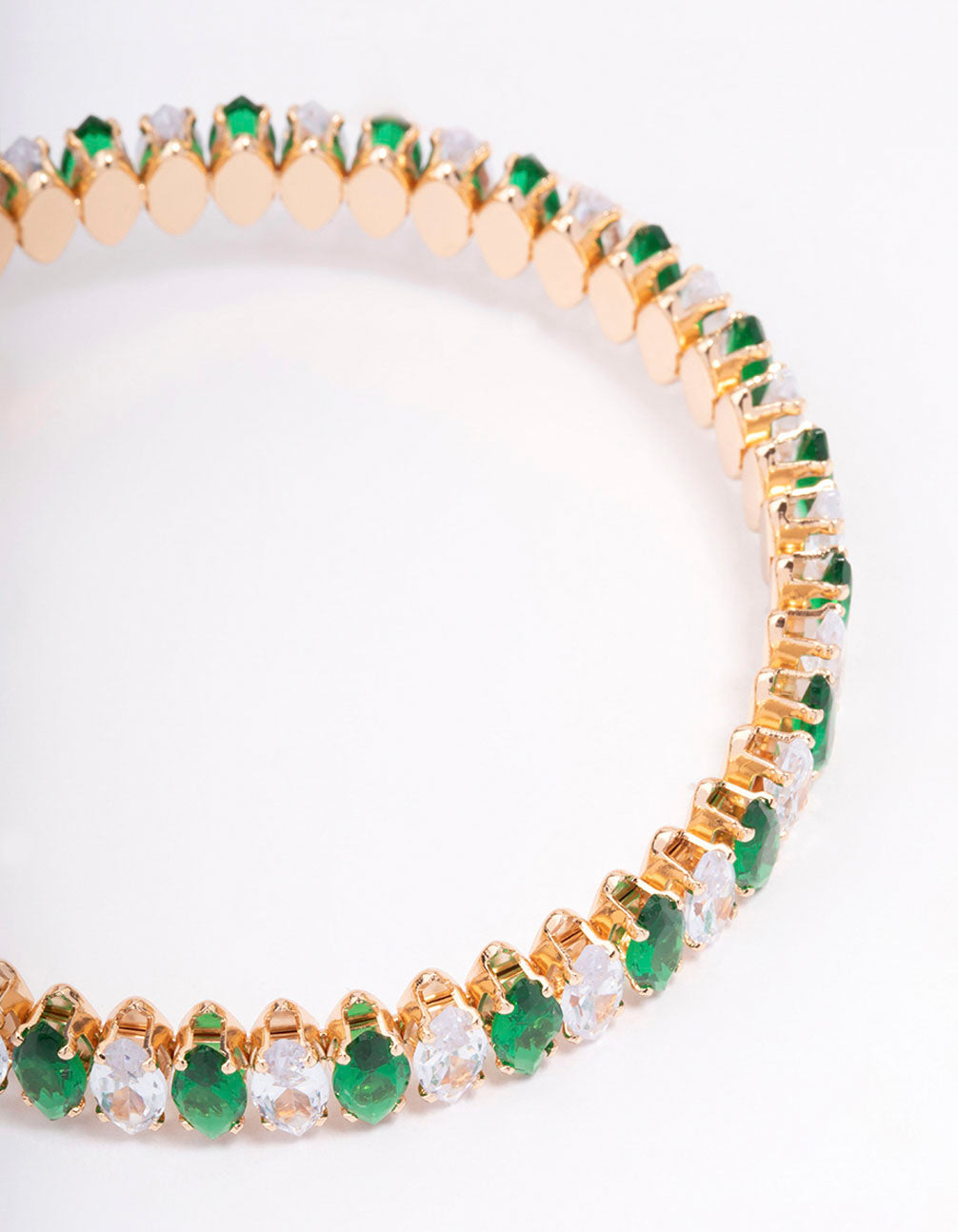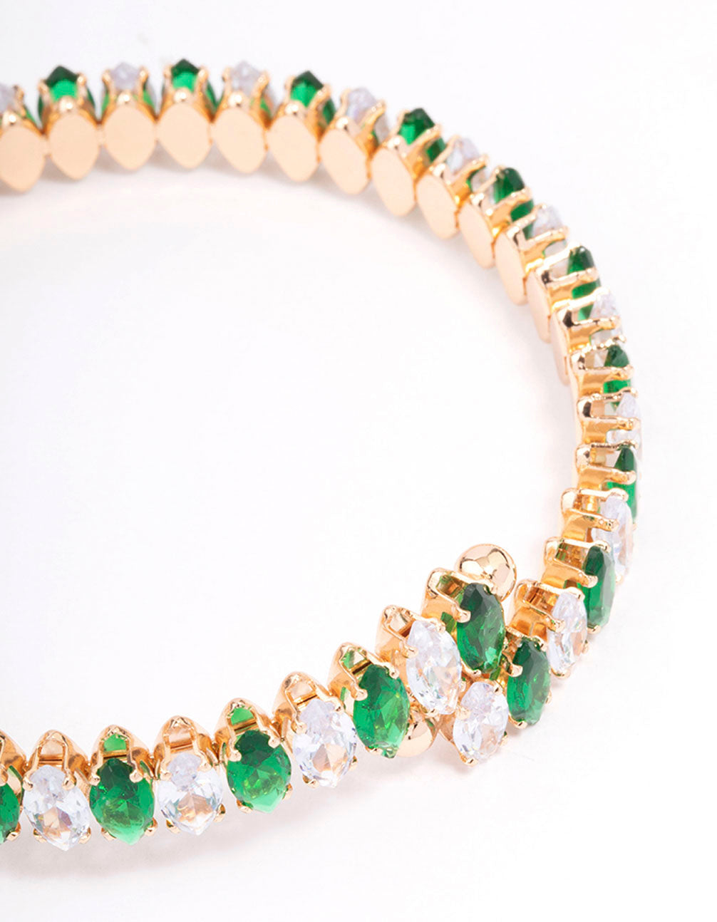 Gold Cubic Zirconia Navette Stone Wrist Cuff