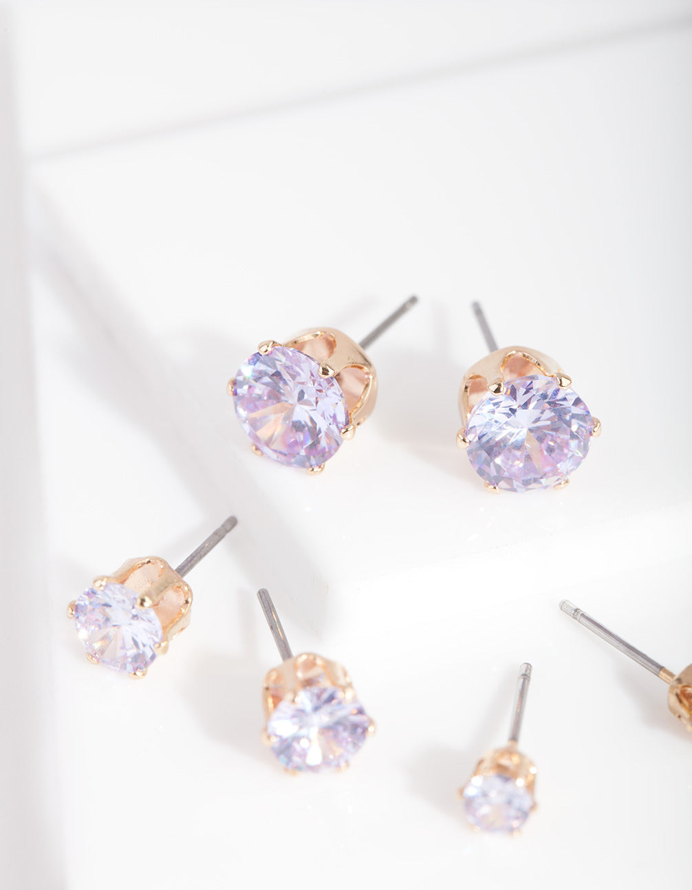 Gold Purple Cubic Zirconia Graduating Stud Earring Pack