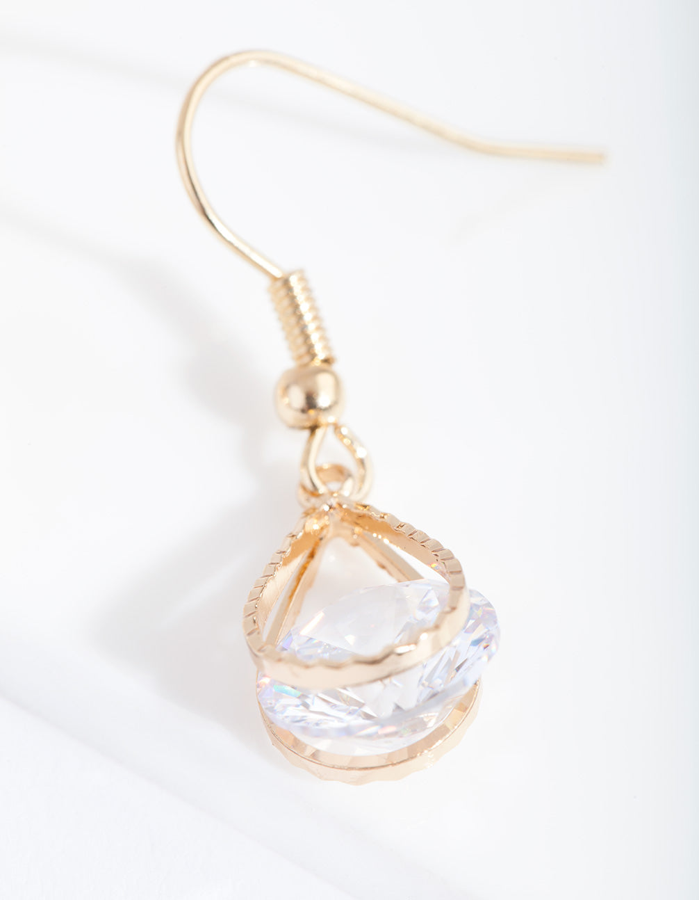 Cubic zirconia stones provide a luxury look without the high-end price point. Add some sparkle to your most formal events, or style them down for daily wear! These drop earrings feature a gold-toned setting cage with a large cubic zirconia stone.