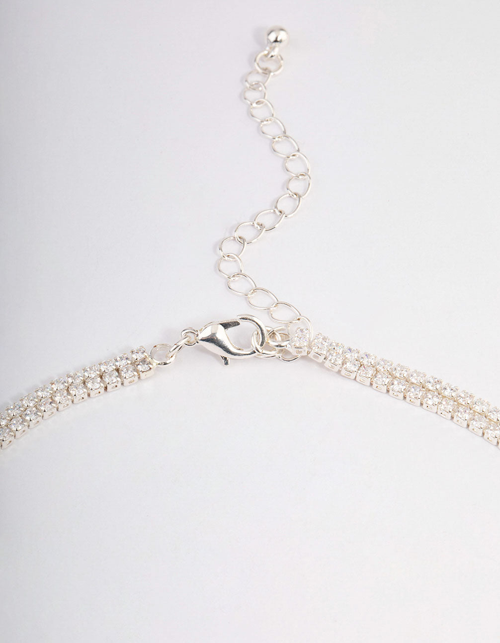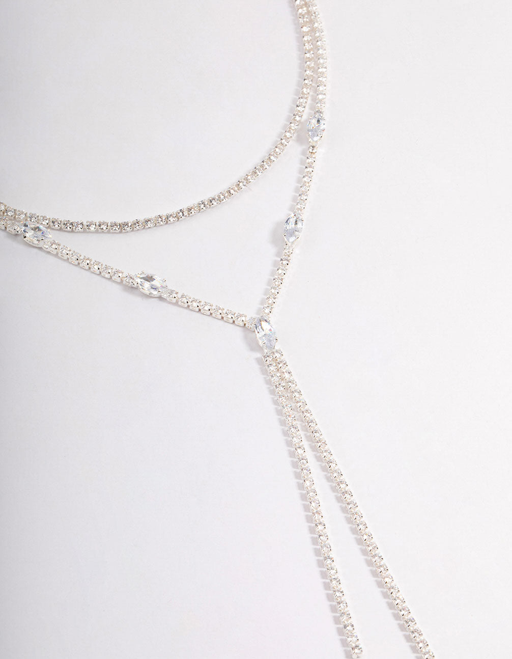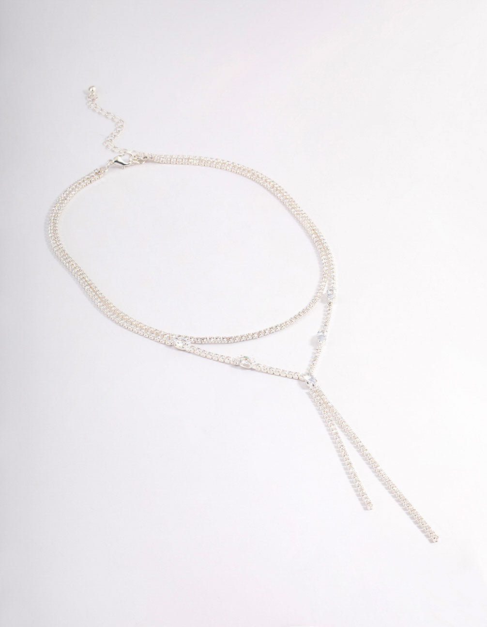 - Style this silver, cubic zirconia double row spit Y-shaped necklace with a pair of diamante drop earrings for a luxe look.