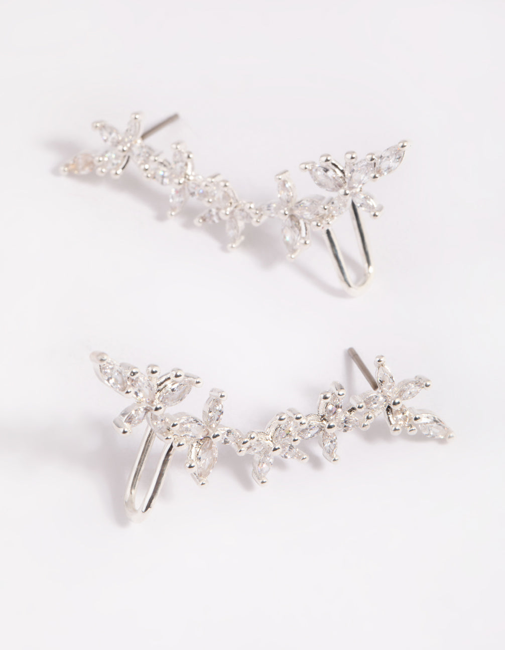 Silver Cubic Zirconia Floral Cuff Earrings