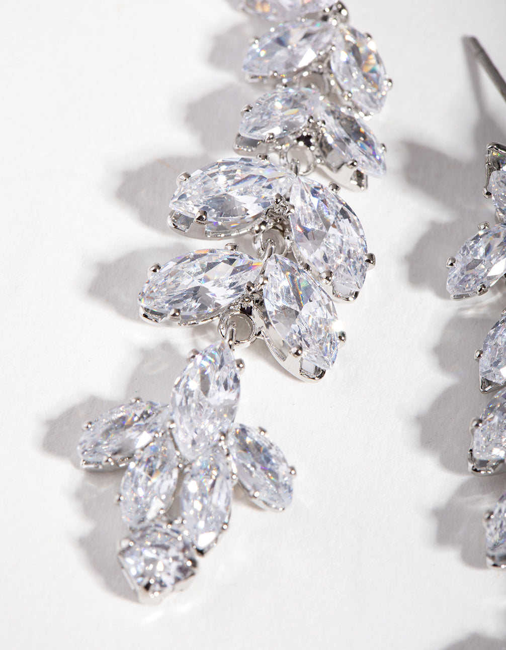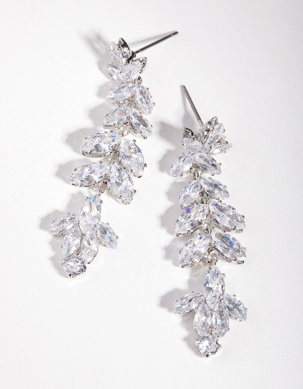 Exude glamour and sophistication with cubic zirconia stones. They're cut to replicate the brilliance and facets of a true diamond. These earrings are silver toned, and feature a dramatic drop design studded with leaf-like stones. Wear them to elevate an evening ensemble and evoke a sense of effortless luxury.