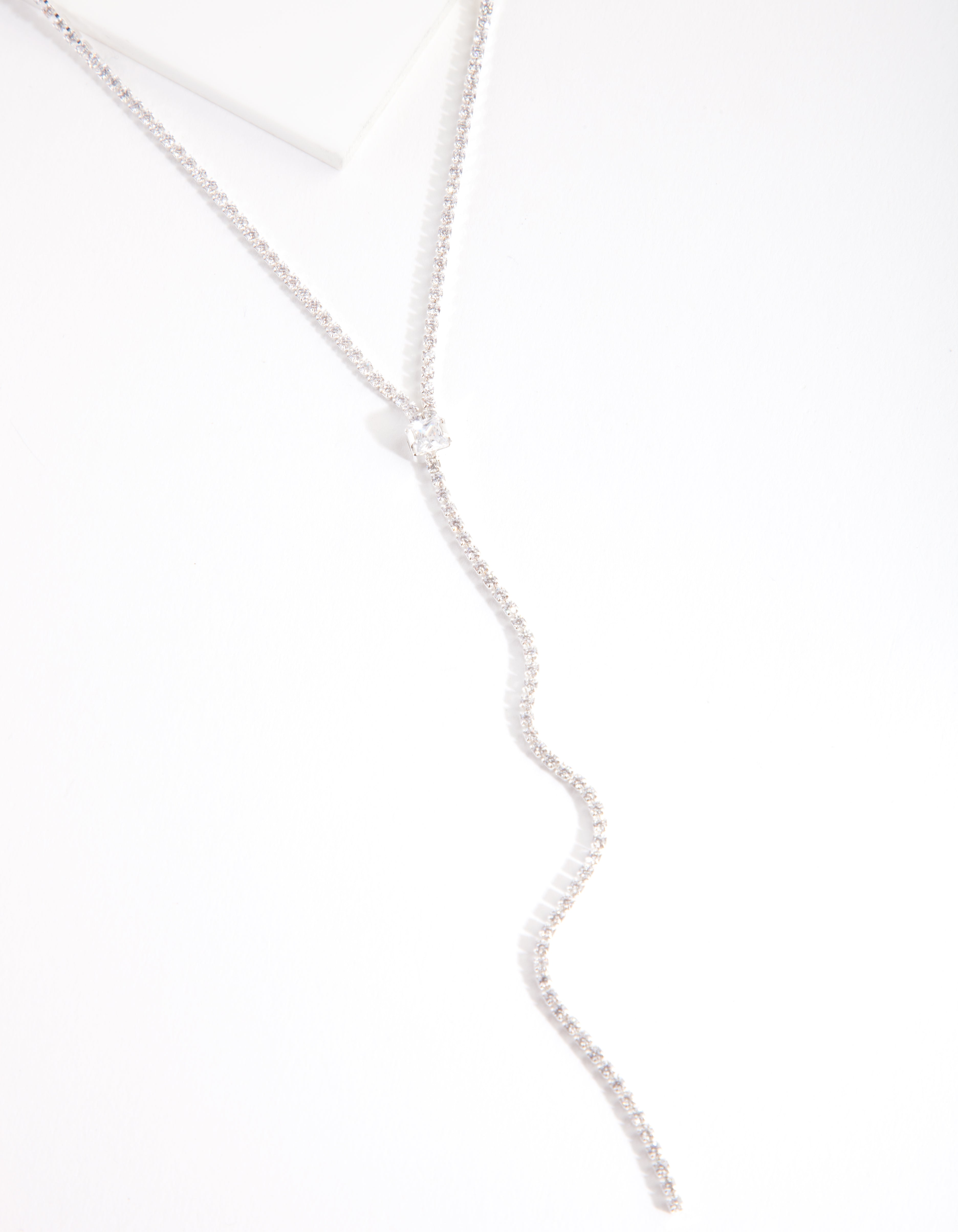 Made with diamond simulants - crystals that are cut to be indistinguishable to the naked eye from a true diamond, this long infinity necklace comes in a silver tone with a cubic zirconia charm design.