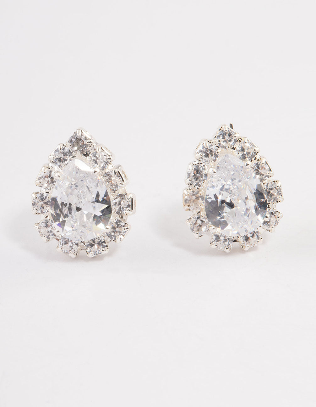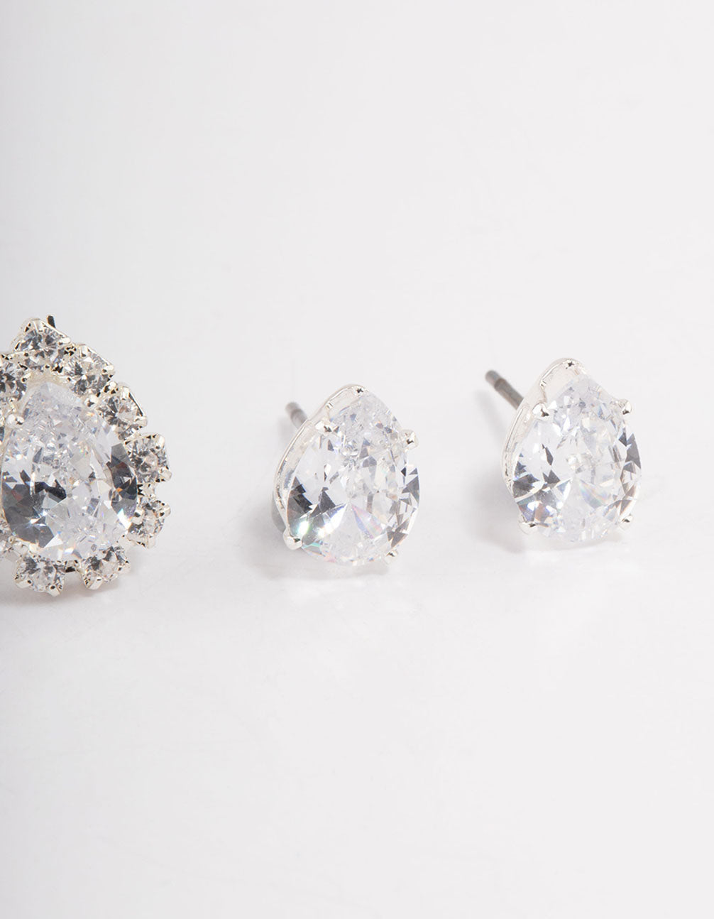 Silver Fancy Cubic Zirconia Pear Earrings Pack