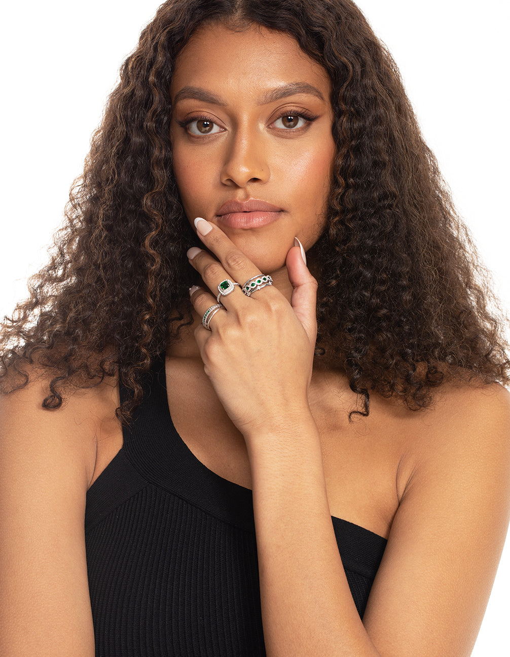Emerald Cubic Zirconia Statement Ring 5-Pack