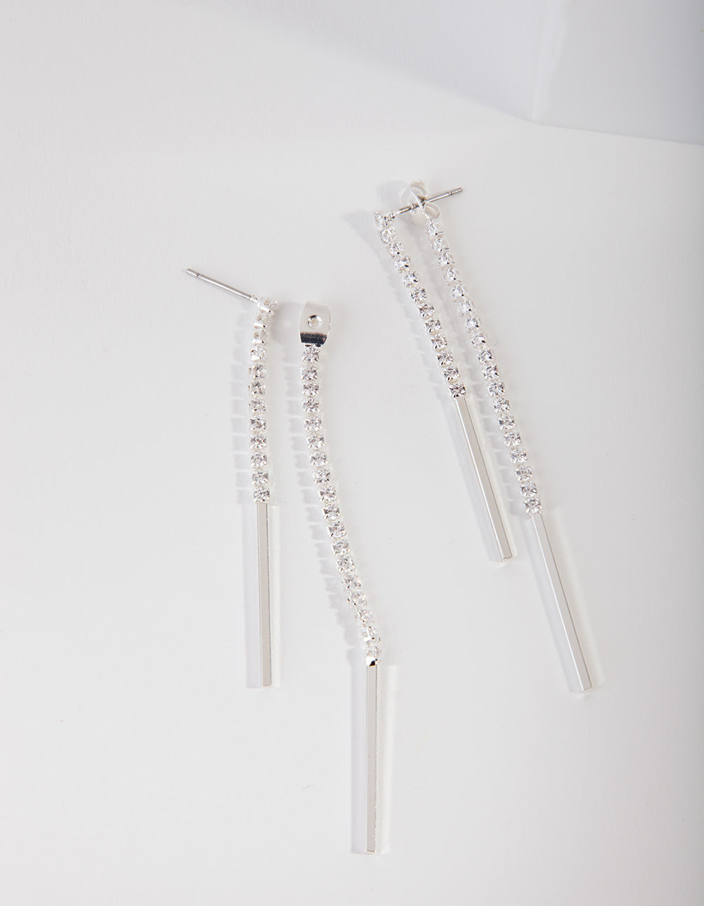 Silver Cubic Zirconia Cupchain & Bar Drop Earrings