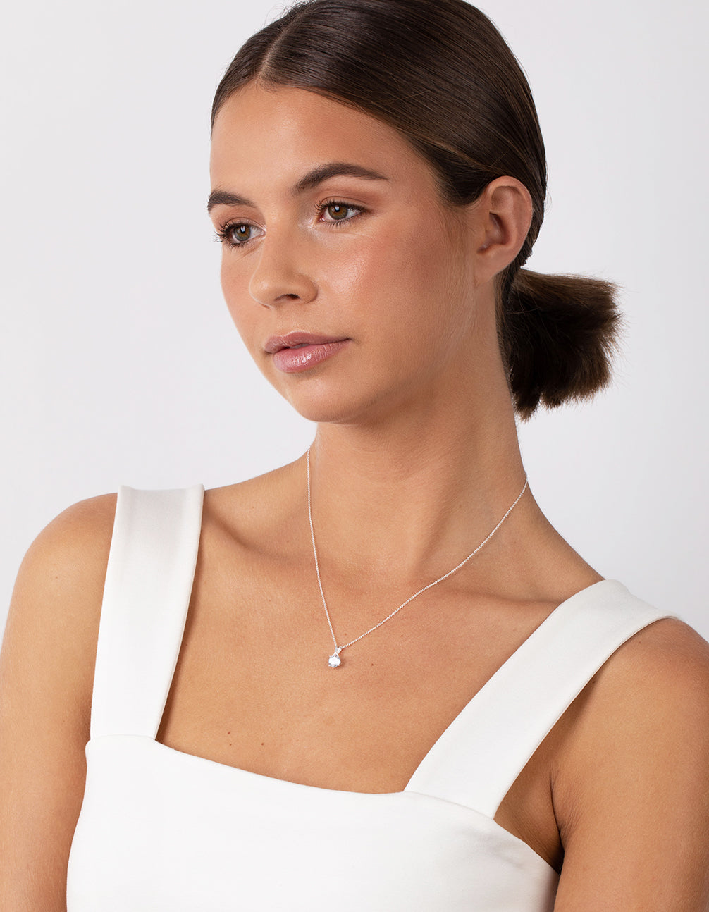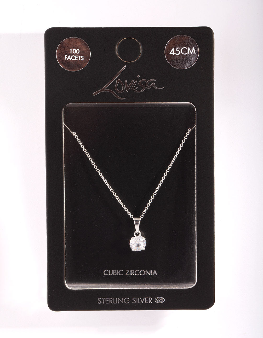 Attract light and shine with classic sterling silver jewellery embellished with cubic zirconia stones. These flawless embellishments are the perfect way to bring that added bit of sparkle to your collection. This necklace features a 100 facet 4 claw design.