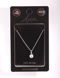 Sterling Silver Cubic Zirconia 100 Facet 4 Claw Necklace