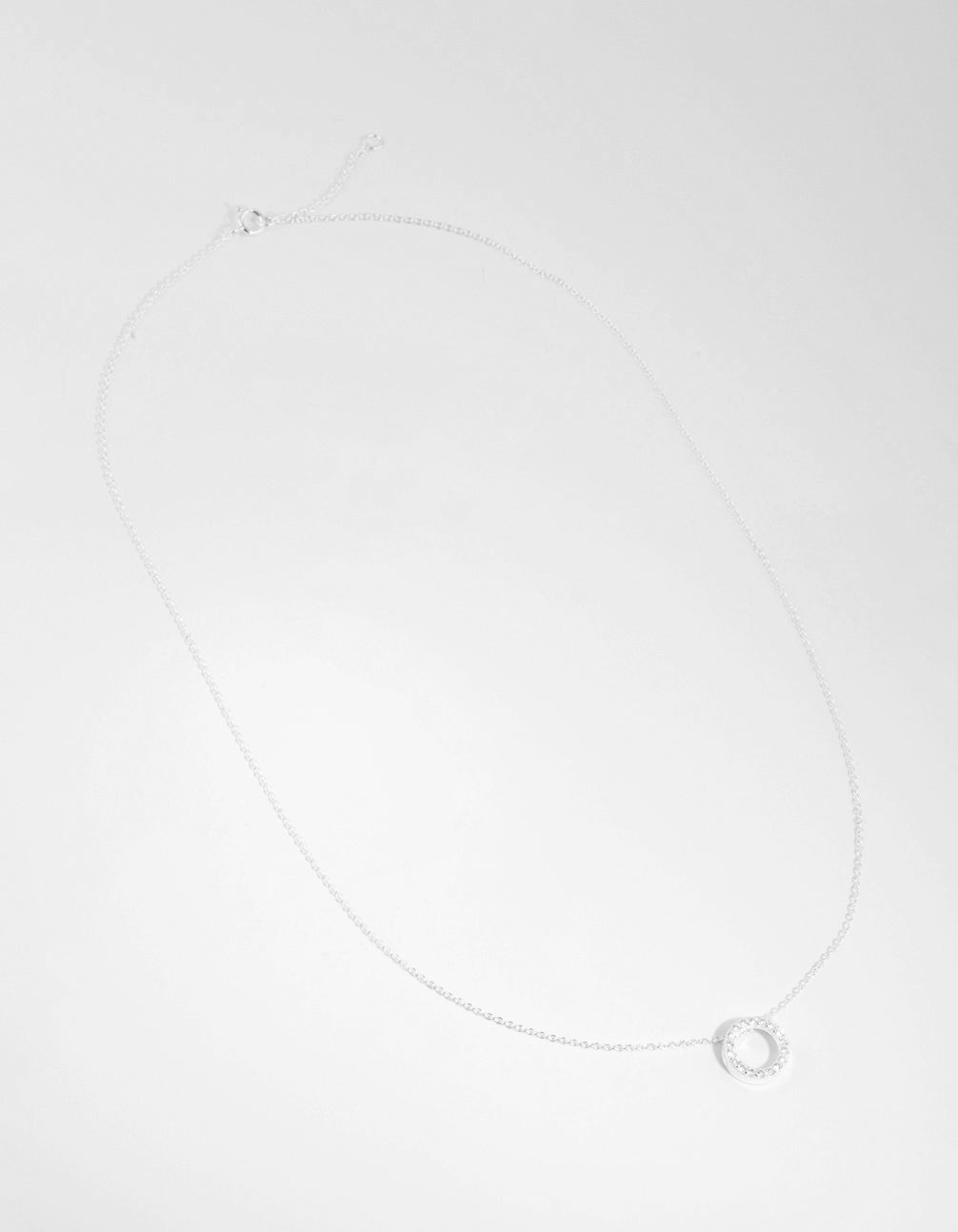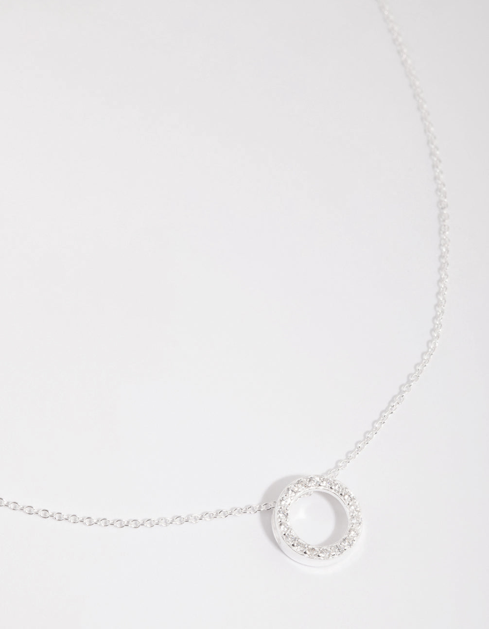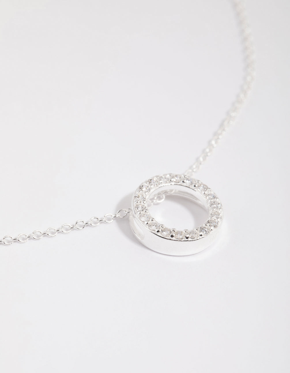 Sterling Silver Cubic Zircona Pave Open Circle Necklace