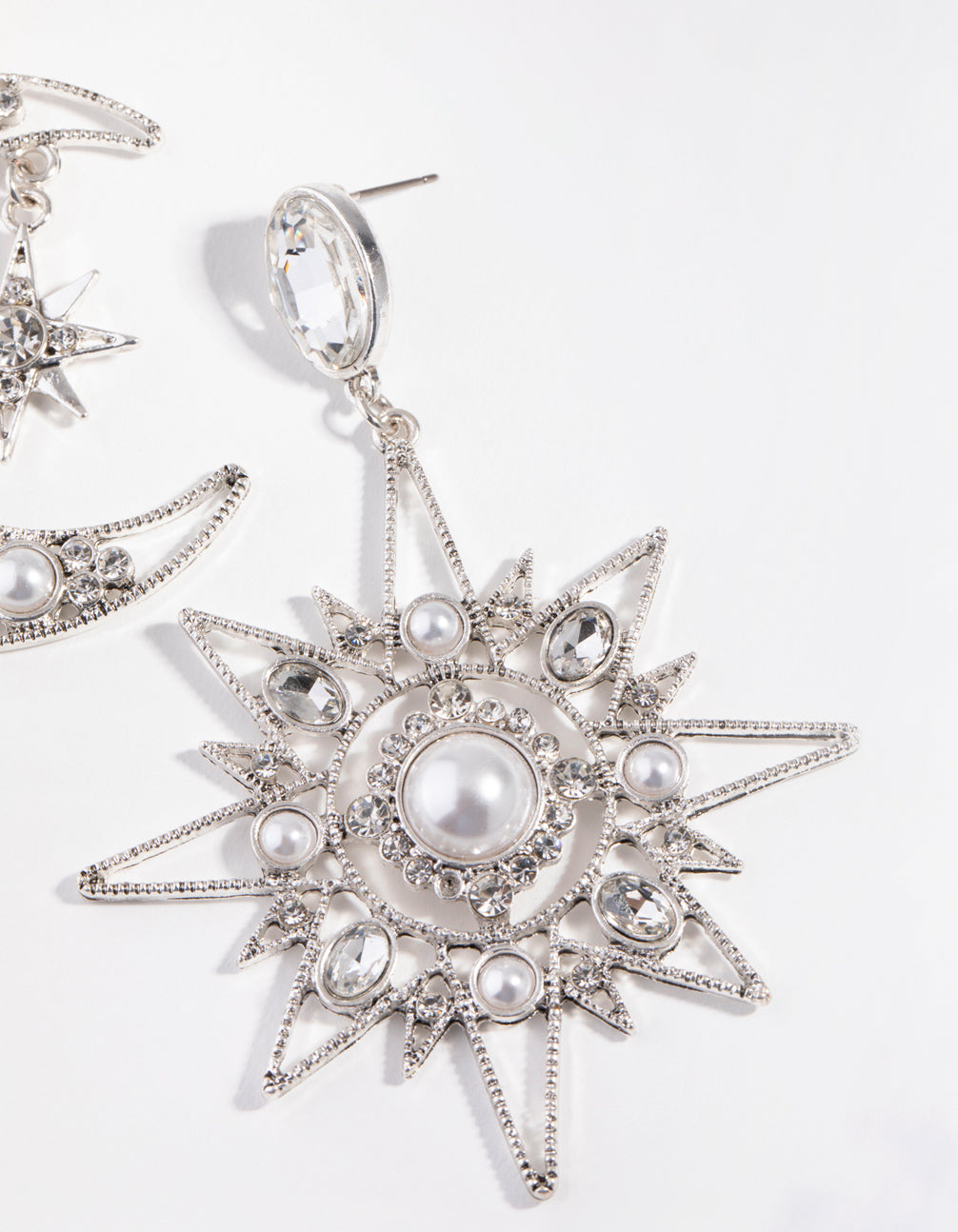Make a statement with some luxe drop earrings. Crafted in a star and moon shape, these earrings are antique-silver-toned and adorned with sparkling gems and faux pearls. Pair with your favourite silver-toned jewellery for a truly glamorous ensemble!