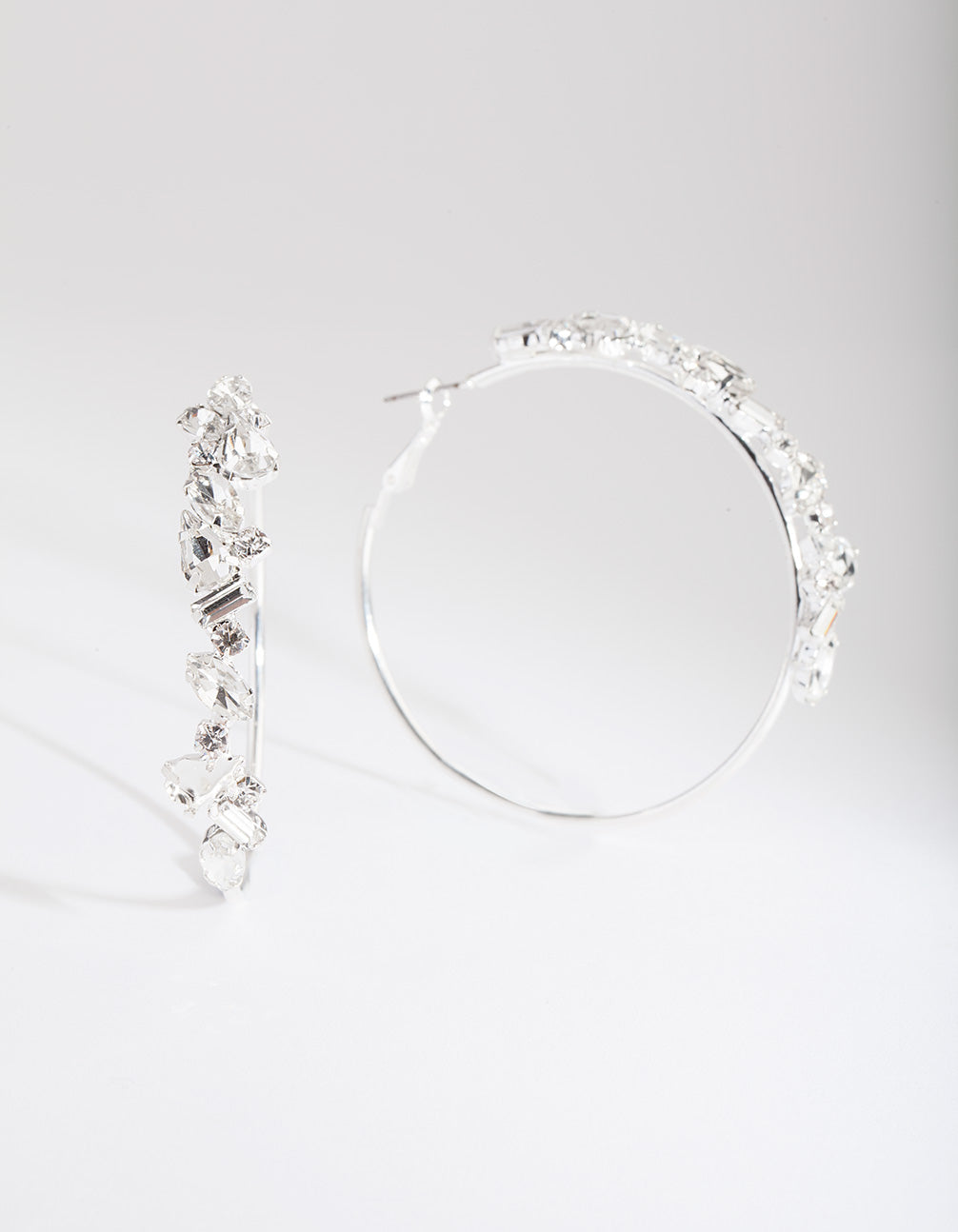 Silver Cluster Gem Hoop Earrings