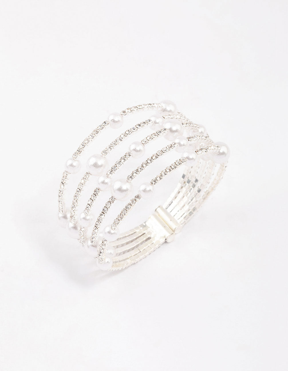 - Style this Silver Diamante & Pearl Decorative Wrist Cuff with a set of cupchain diamante earrings for a stand-out finish.