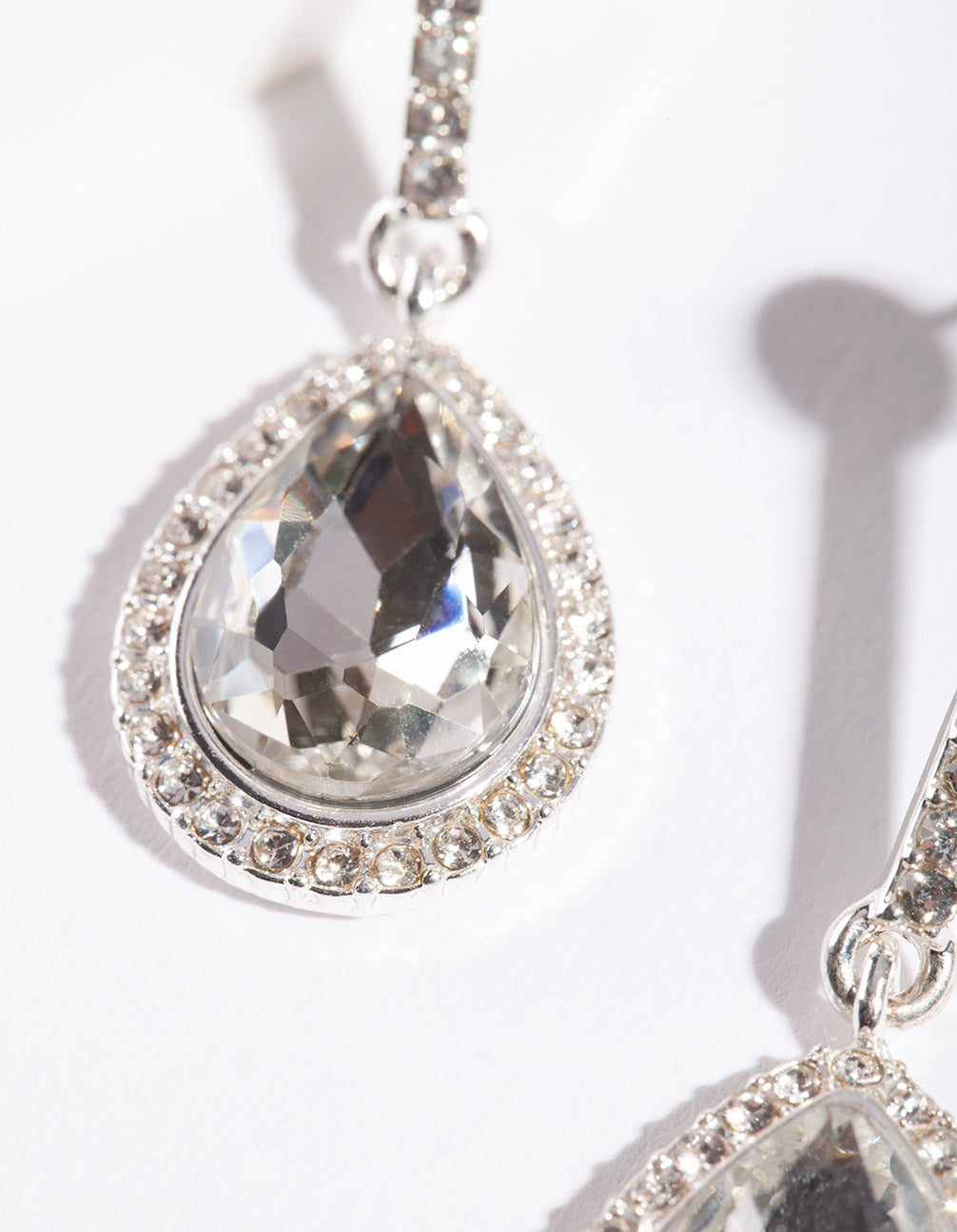 Add some extra style to your look with fashion earrings. This pair features a silver-toned setting with diamante embellishments and a teardrop design.