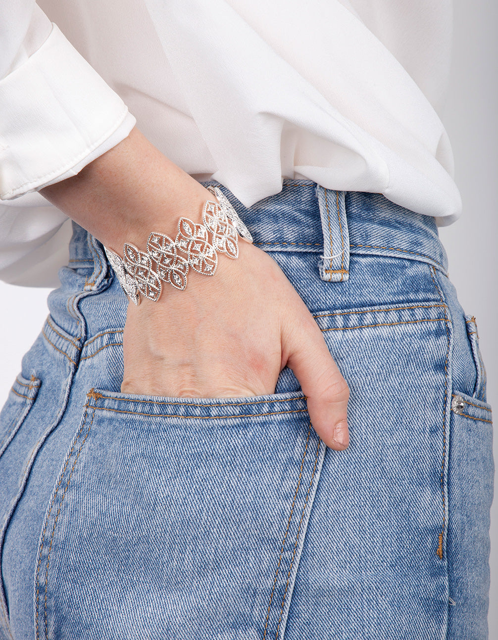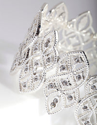 Bangles can be worn so many ways. On the wrist as a classic bracelet/bangle or higher on the arm for a trend-led look. This stretch bangle boasts a filigree diamante embellished design in a silver-tone setting.