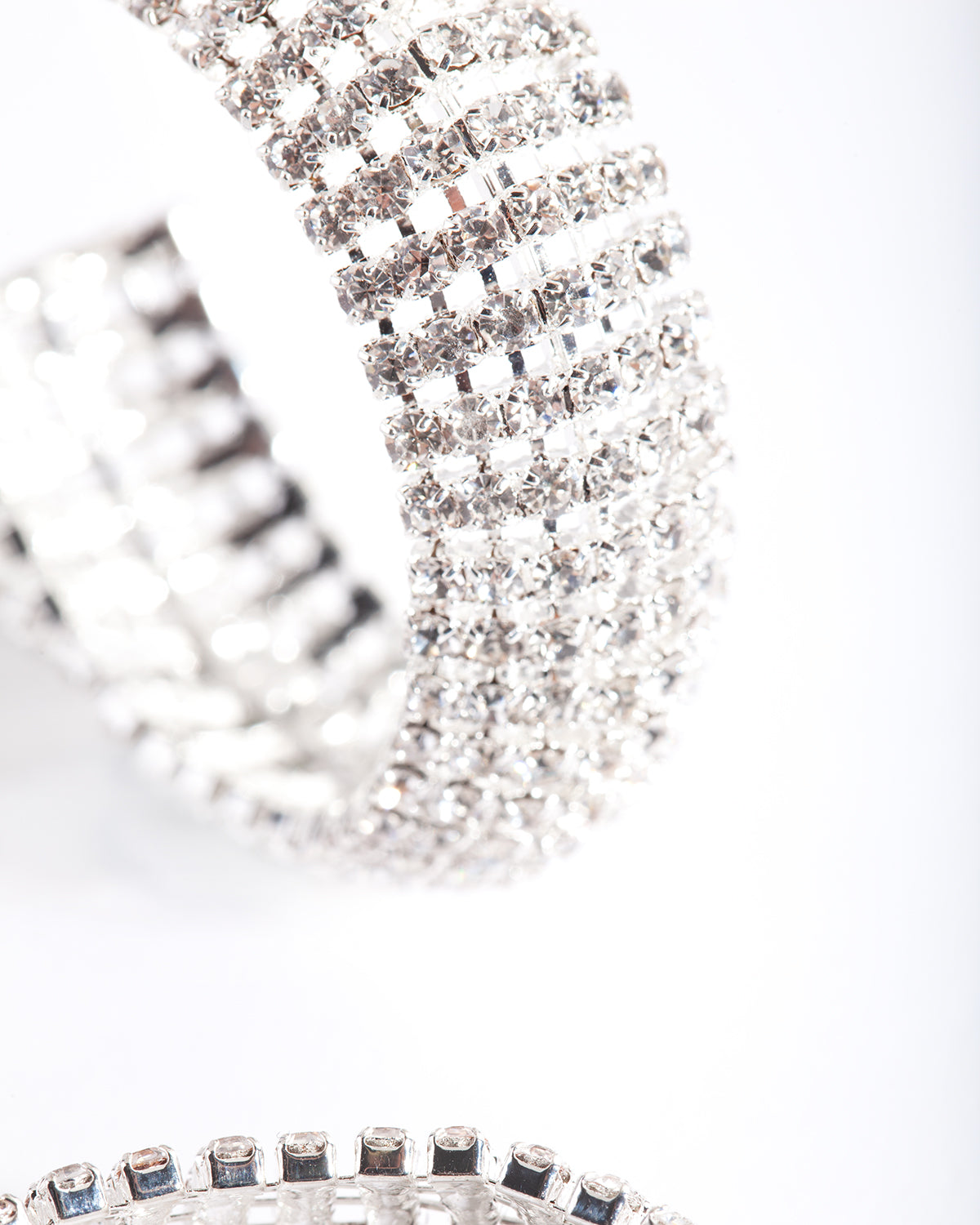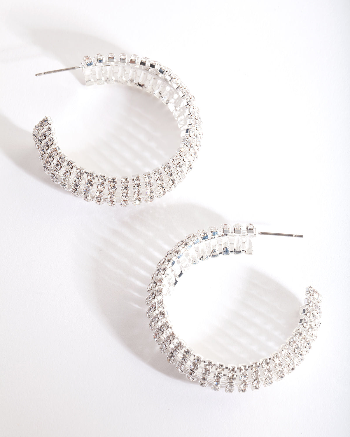 A fun pair of fashion earrings are an easy way to spice up your daily ensembles! Experiment with your style! These silver-tone hoop earrings boast a thick diamante embellished design.