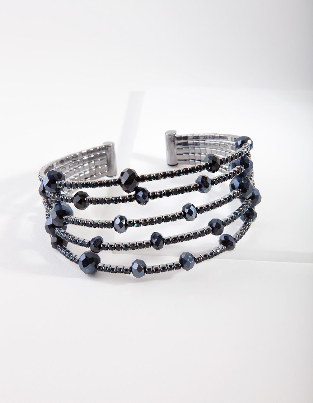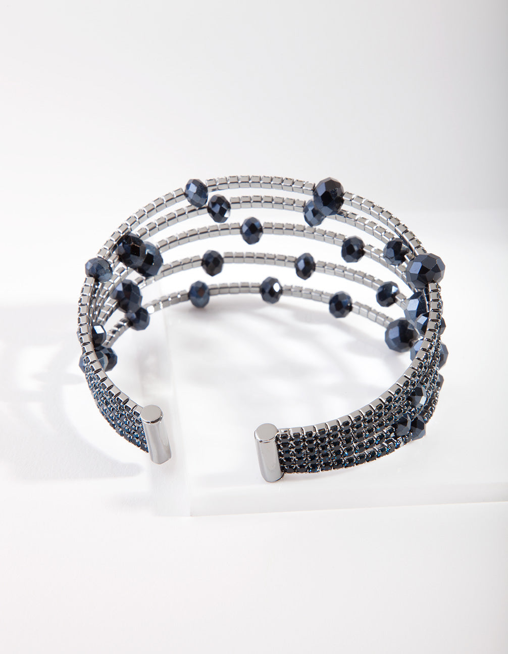 Midnight Blue Facet Bead Diamante Strand Cuff