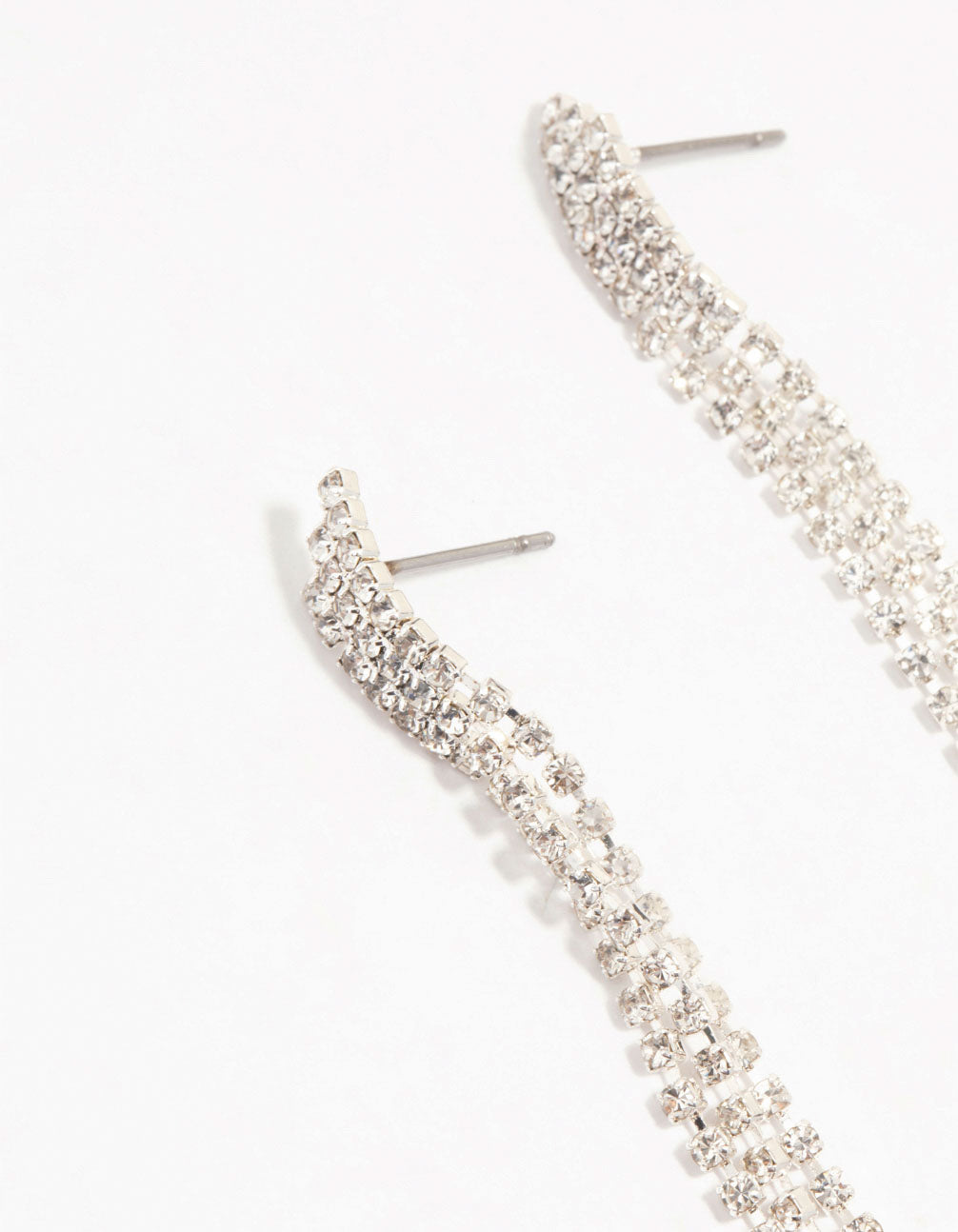 Dazzle and delight with these Diamante Cup Chain Drop Silver Earrings. Crafted with diamantes and a silver toned base, these playful drops bring instant glamour to any look. Perfect for day or night, just slip them on and let your style shine.