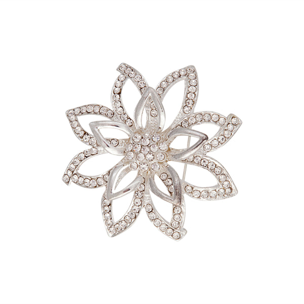 Sparkle in style with this layered flower Brooch adorned with diamante stones. Pin to your lapel or fix to your up do for a touch of unexpected glamour.