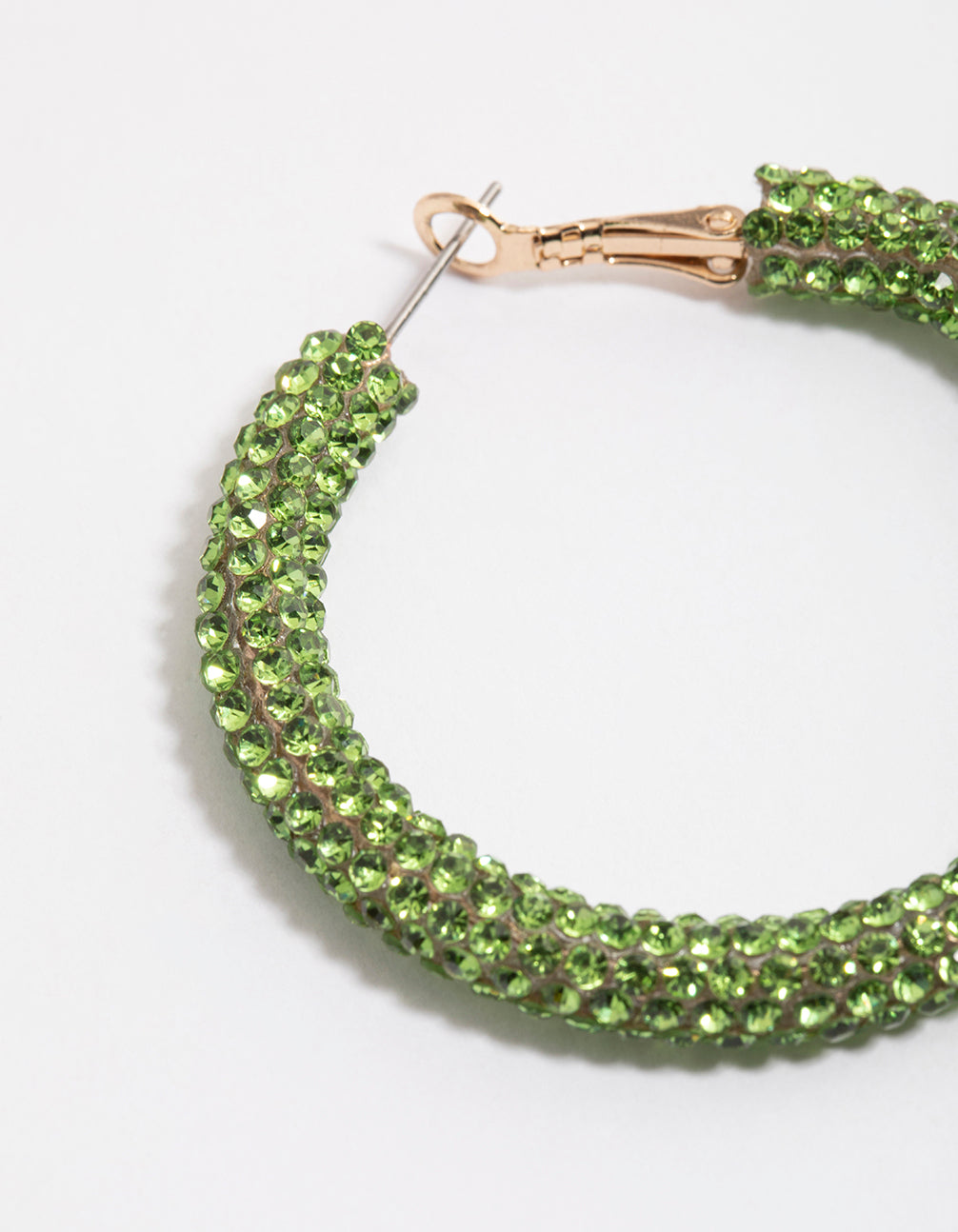 - Channel summer all year round with these green, crystal wrapped hoop earrings.