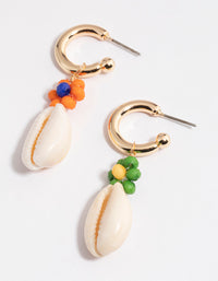 Gold Flower Shell Hoop Earrings