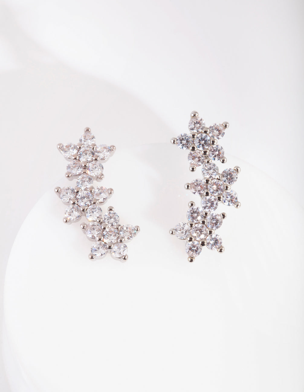 Lovisa diamond simulants are cut to be indistinguishable to the human eye from a true diamond. This silver-tone stud earring features a flower crawler cubic zirconia embellished design.