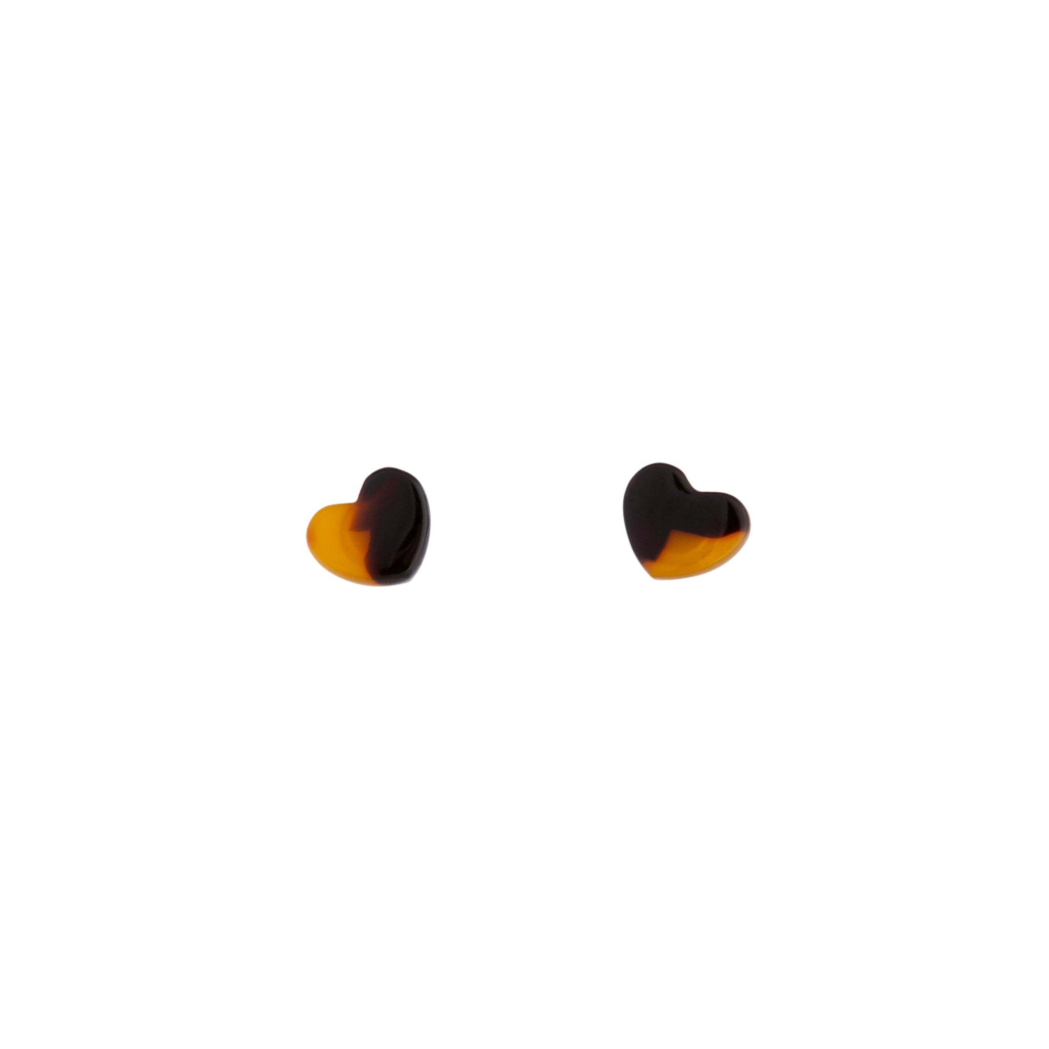 A pair of mini tortoiseshell earrings with a heart shape.