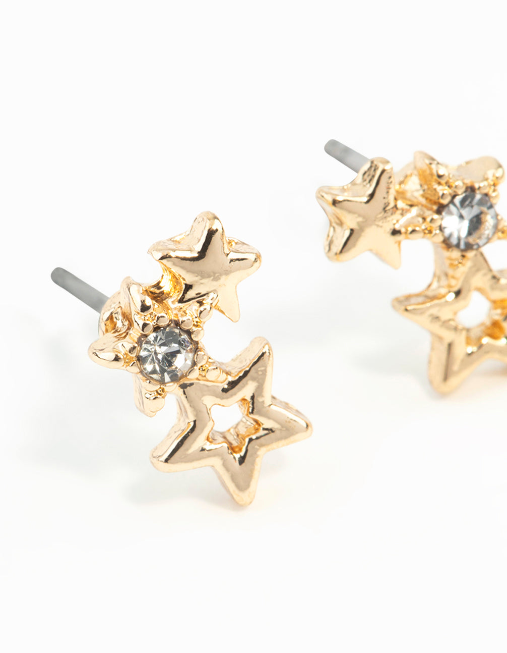 A pair of gold-toned stud earrings featuring a cluster of stars design.