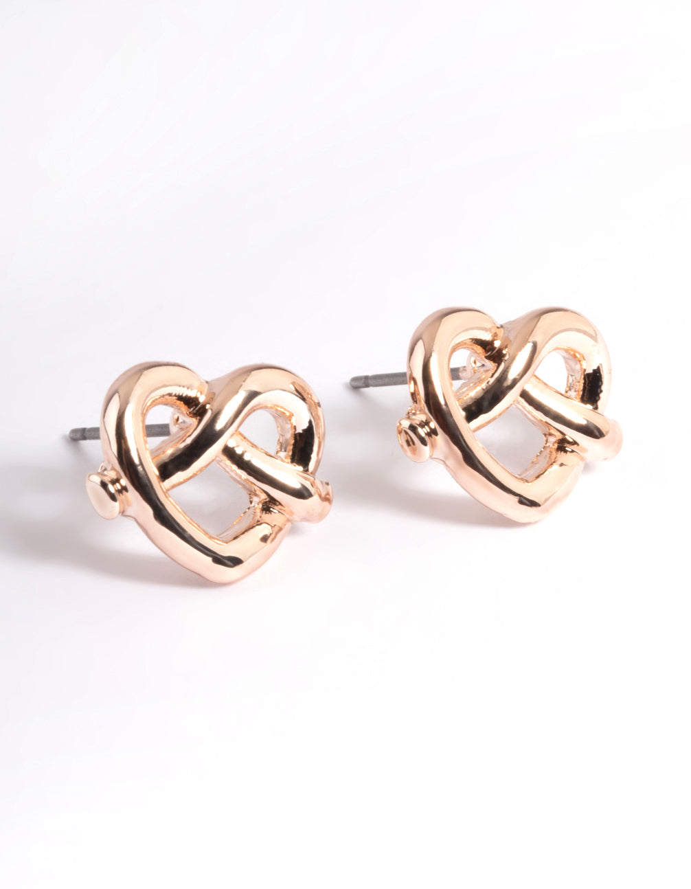 Rose Gold Heart Pretzel Stud Earrings