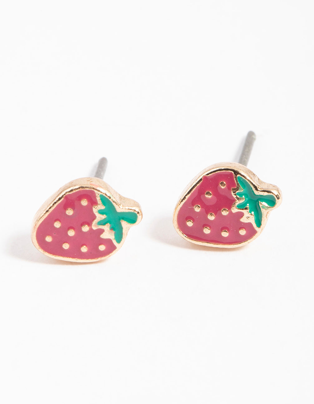 These enamel strawberry stud earrings are the perfect accessory to bring a hint of summer to your outfit! Style these strawberry motif earrings with accessories from our Curated Collection for a pop of colour.