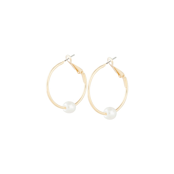 Pretty in pearls! These elegant gold-toned hoops feature a single pearl bead for a feminine touch. Style with delicate pearl and gold-toned necklaces and rings for a refined and classic finish.