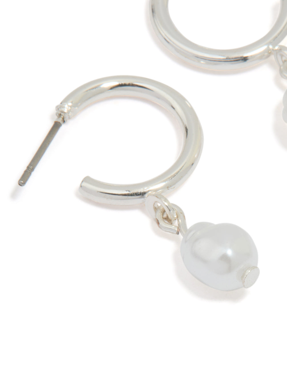 Silver Pearl Drop Huggie Earrings