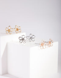 Pack of three wire flower studs in various metals.