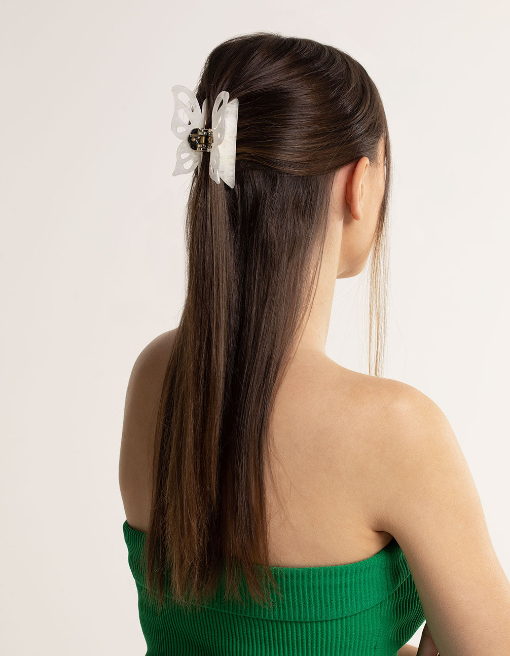 Embrace 90s trends with funky hair claws! This one is fairly large (measuring 8cm in length) and boasts a lovely, butterfly design. It's a gorgeous, silvery colour with a pearlised, shiny effect. This is the perfect piece to transform a plain hairstyle into a chic trend-driven look.