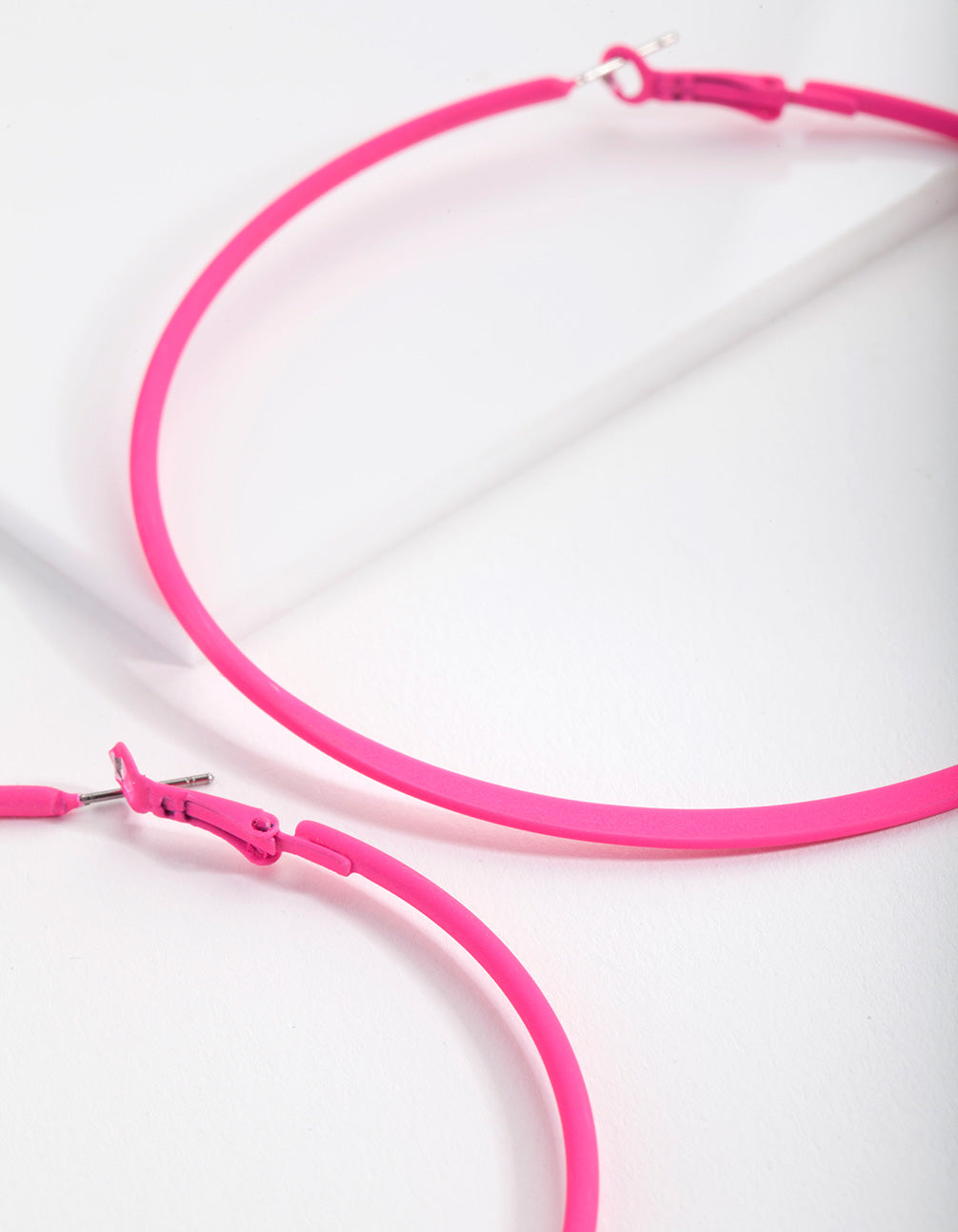 Can we get a hoop hoop? Almost any outfit can be improved with a pair of hoop earrings! These ones are neon pink and they boast a matte finish. Pair them with denim and a funky layered necklace and enter an 80s dream world.