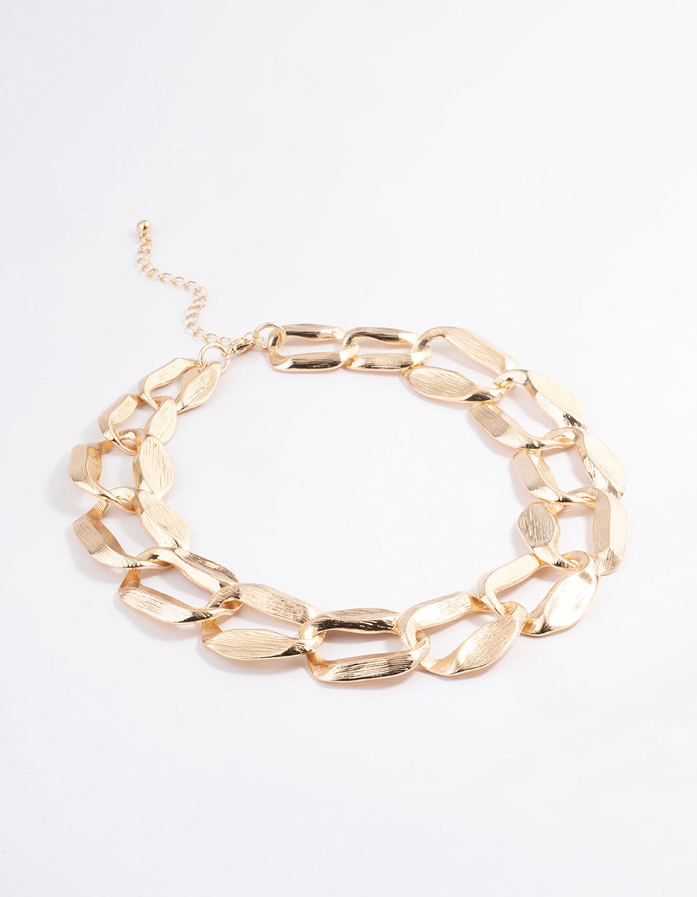 Style the texture trend with timeless pieces from our Fashion Collection! This gold-toned necklace features a chunky, hammered chain that pairs perfectly with a suite of gold essentials. For the ultimate it-girl look, style this necklace with a gold signet ring and textured bangle.