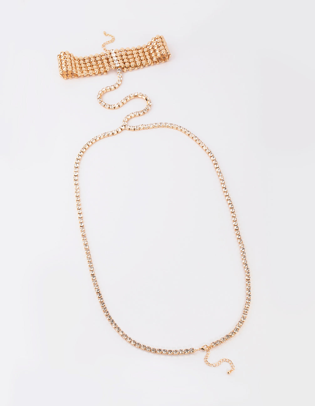 Tap into the hottest new trend with body chains! This chic piece of bodywear can be draped over your clothing to enhance your outfit. Pair it with a simple black ensemble for an elegant finish.