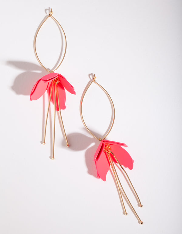 Fluorescent Pink Coated Metal Flower Drop Earrings