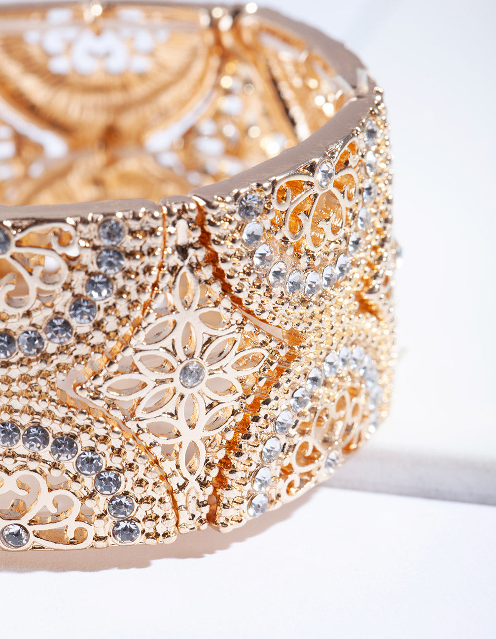 Gold Filigree Diamante Stretch Bracelet