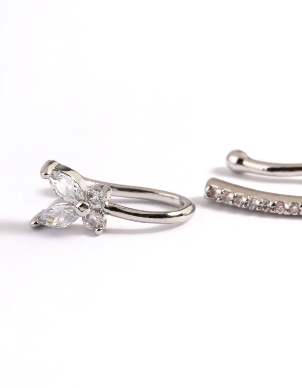 Silver Cubic Zirconia Butterfly Faux Nose Rings