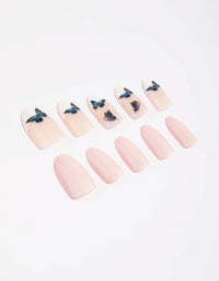 Style these pink butterfly design press on nails with an adorning ring stack for an on-trend look.