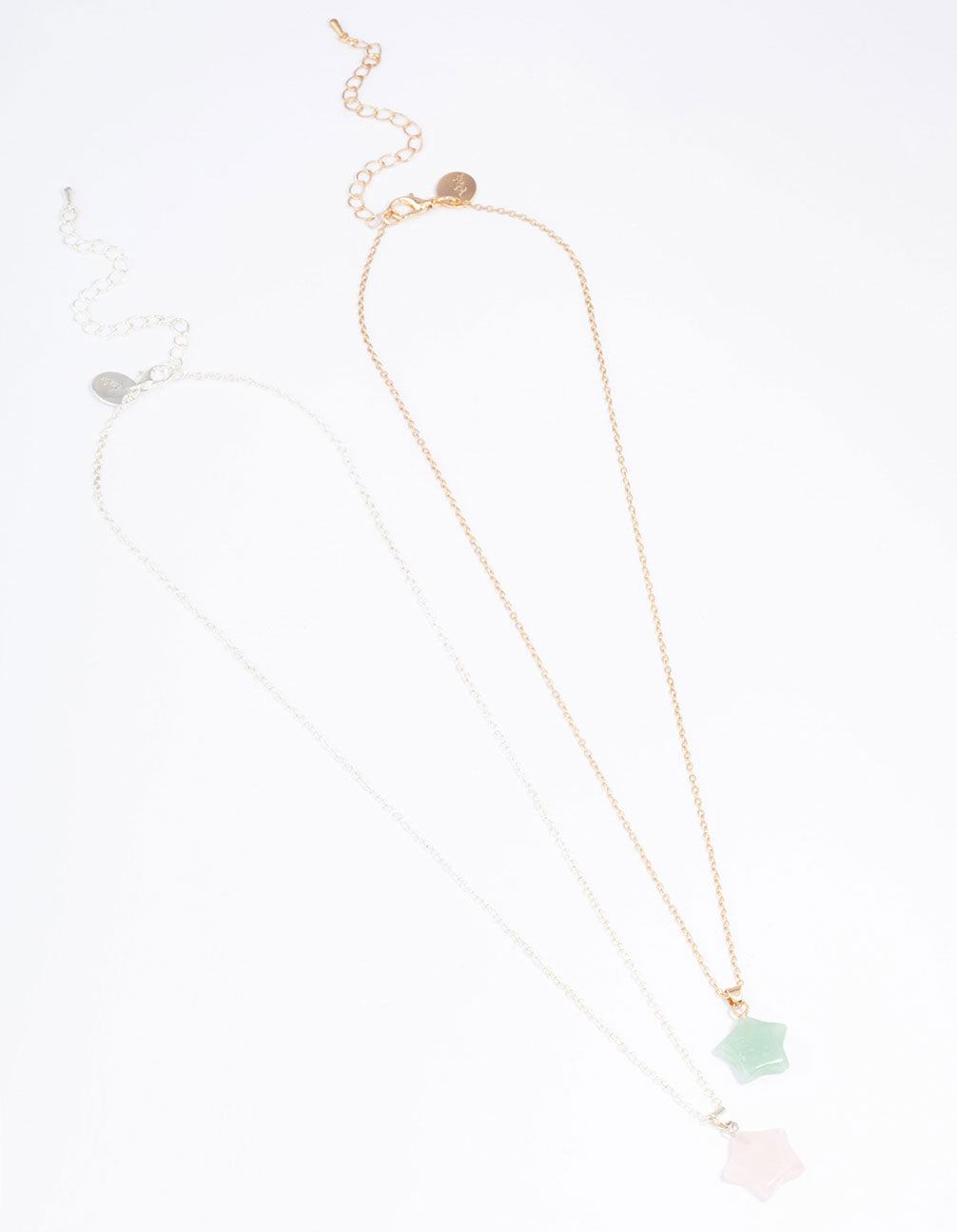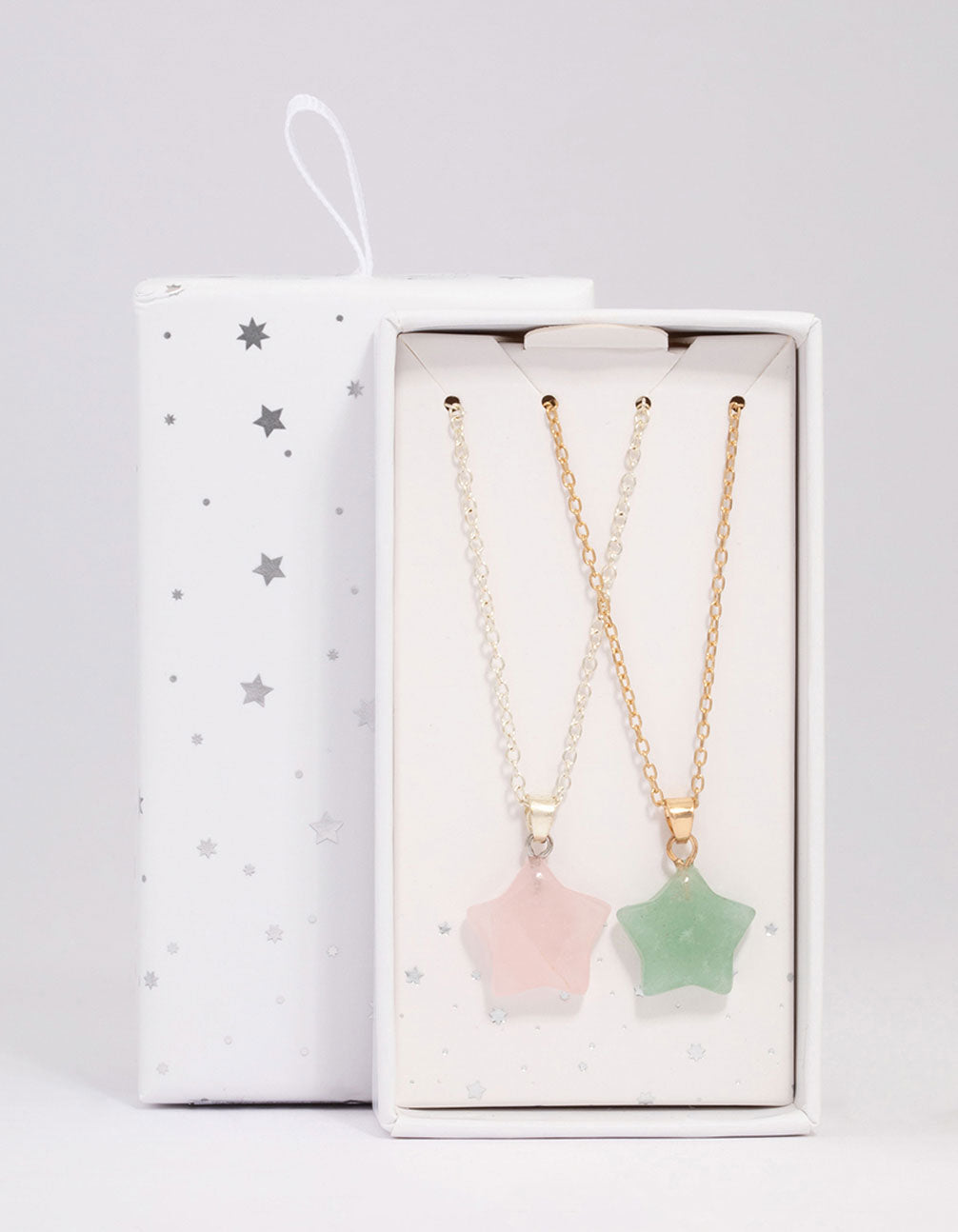 This gift box contains two pendant necklaces with semi-precious star charms for a celestial-inspired look.