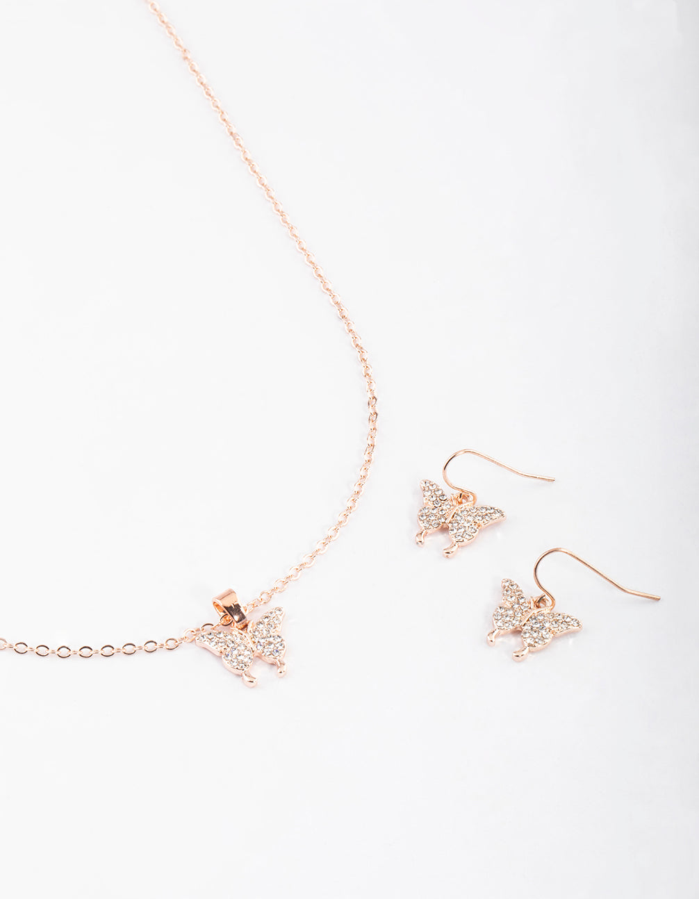 Rose Gold Butterfly Necklace & Drop Earrings Set