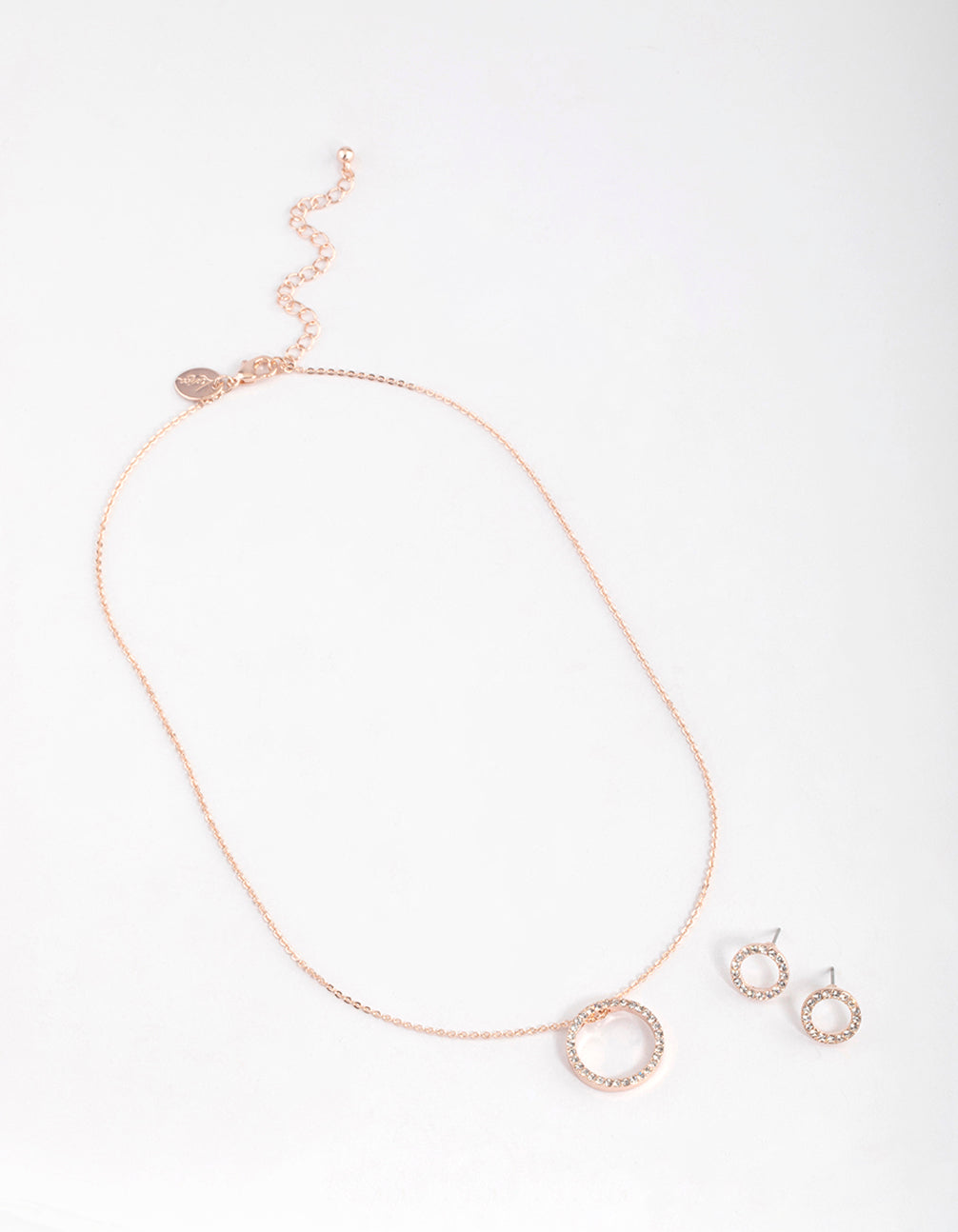 This Rose Gold Diamante Open Circle Jewellery Set features a stunning rose gold necklace and set of matching earrings. This jewellery set comes wrapped in a Lovisa gift box, making it the perfect gift for someone special or for treating yourself to something special.