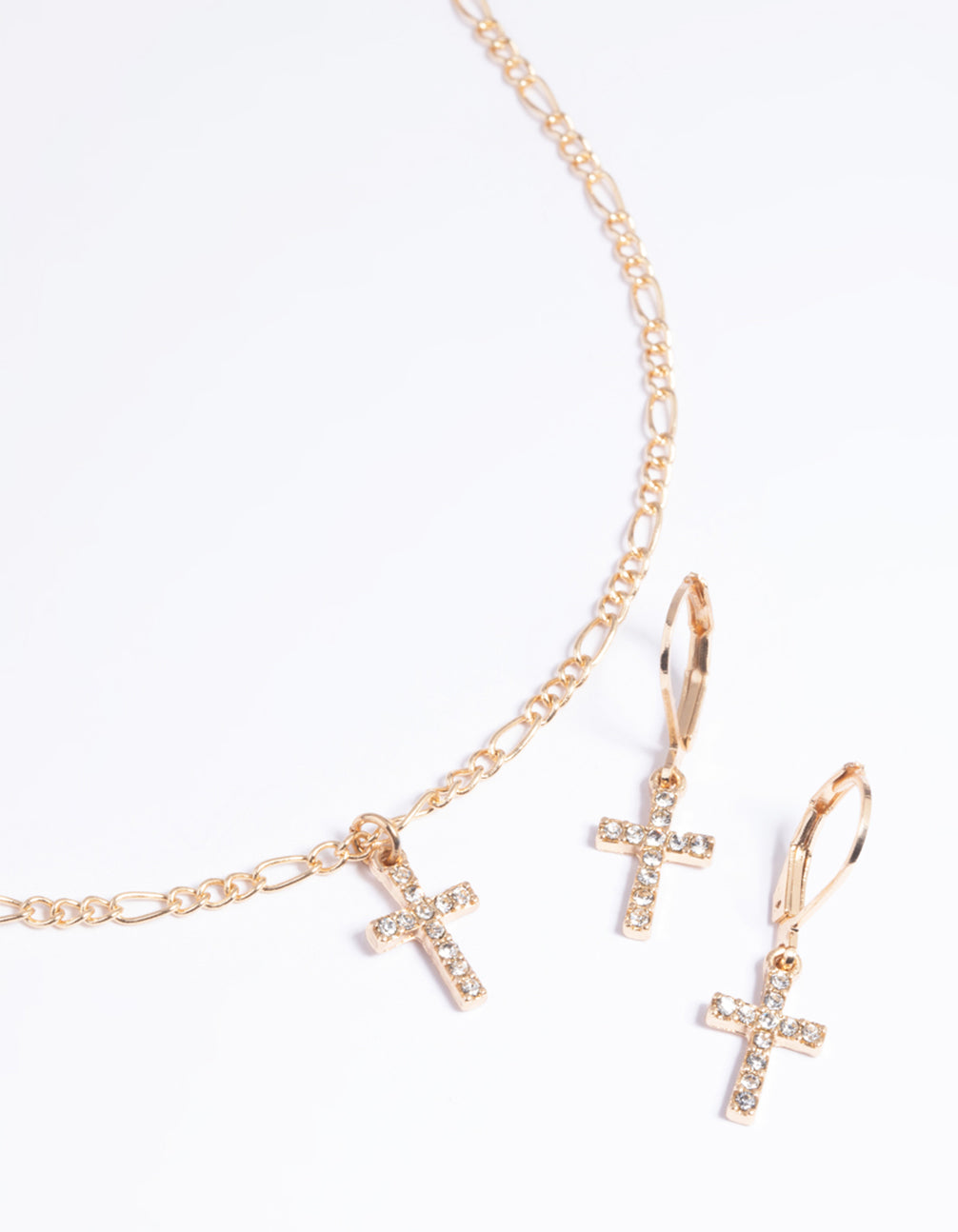 Gold Diamond Cross Earrings & Necklaces Giftbox