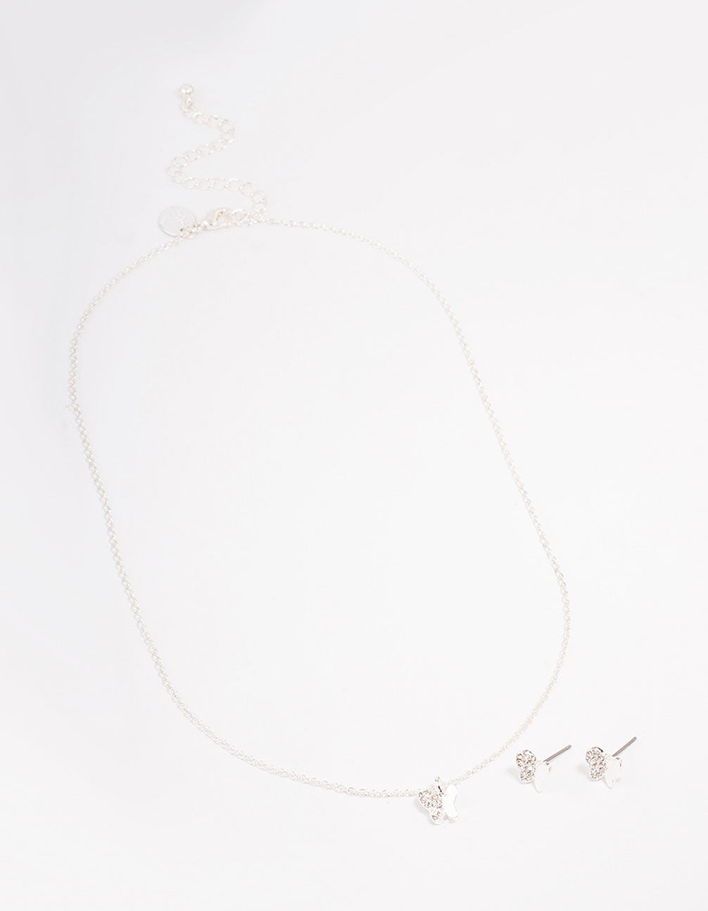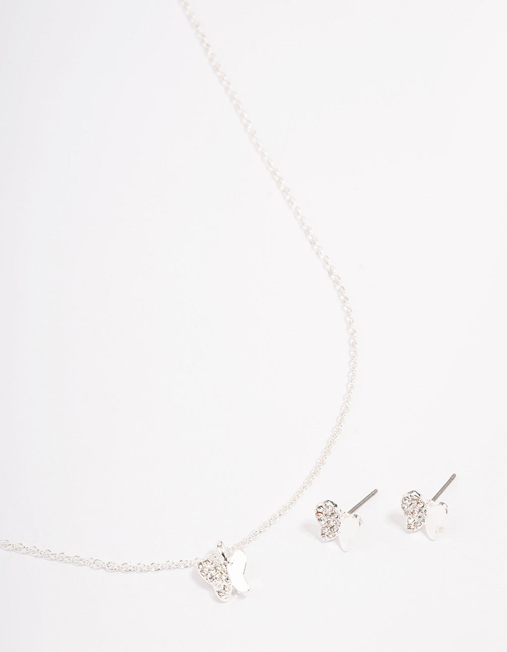 This gift box contains a simple jewellery set adorned with simple butterfly charms for an elevated look.