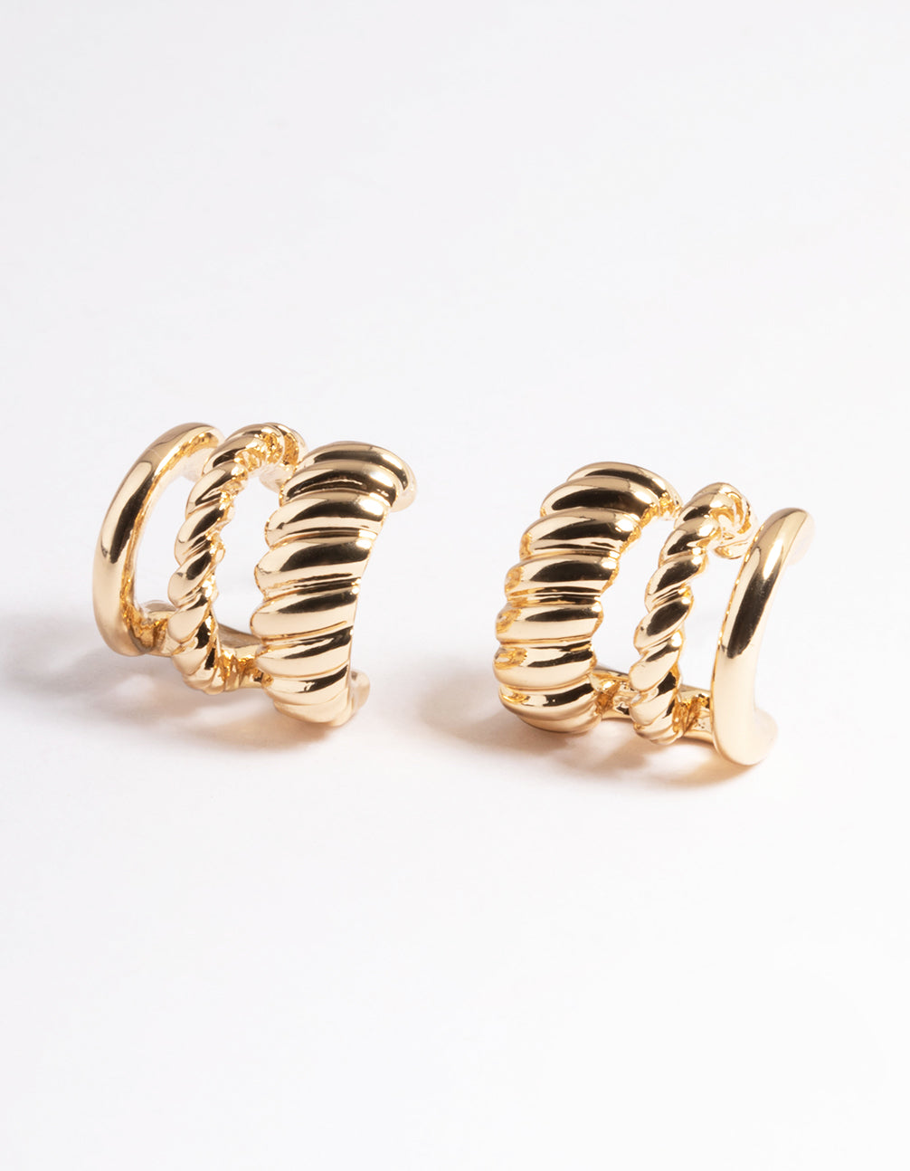 Rhodium Triple Twist Hoop Earrings